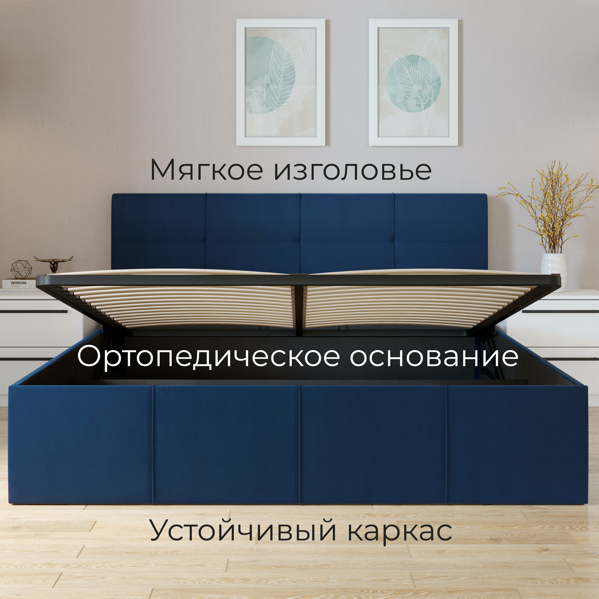 СохранитьКровать с подъемным механизмом, с мягкой обивкой и заглушиной синяя 160х200 Лора Велюр Confetti Blue интересное: