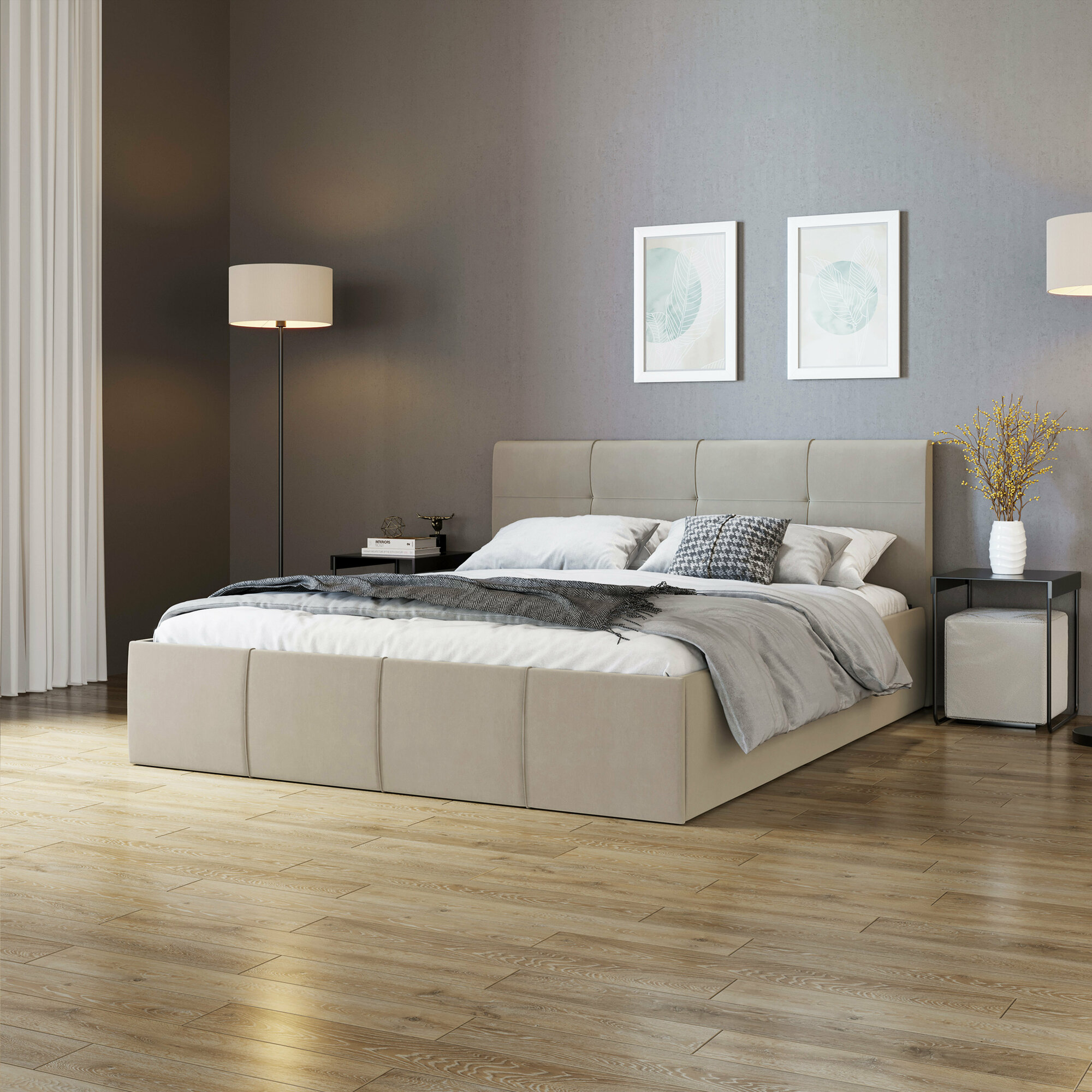 Кровать с матрасом Роза Серая Велюр 160х200