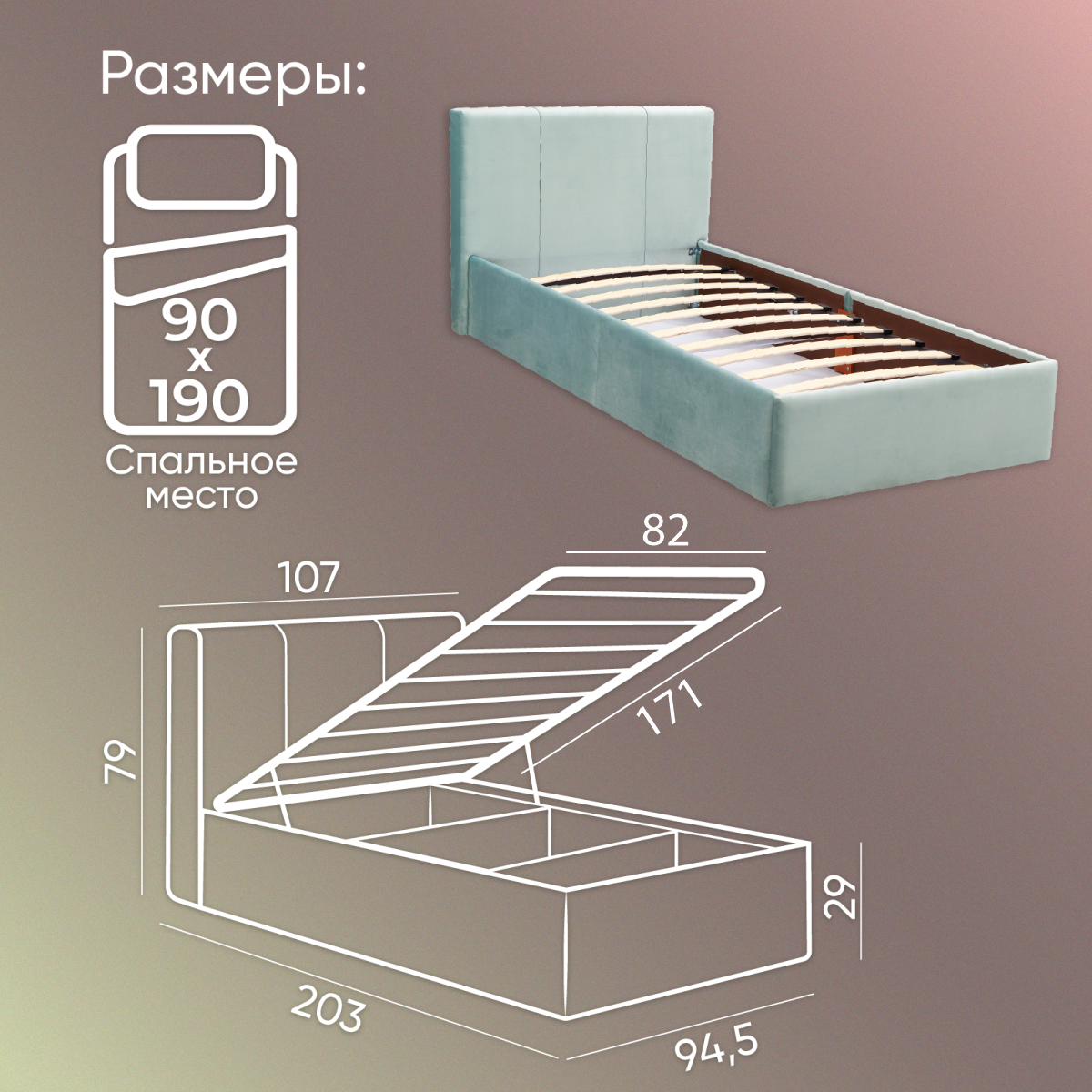 СохранитьОдноспальная кровать детская 90х190 см, подростковая с подъемным механизмом, ортопедическое основание, ламели усиленные, мягкое изголовье, ящик для белья, вельвет мятный, Ами Мебель Беларусь интересное: