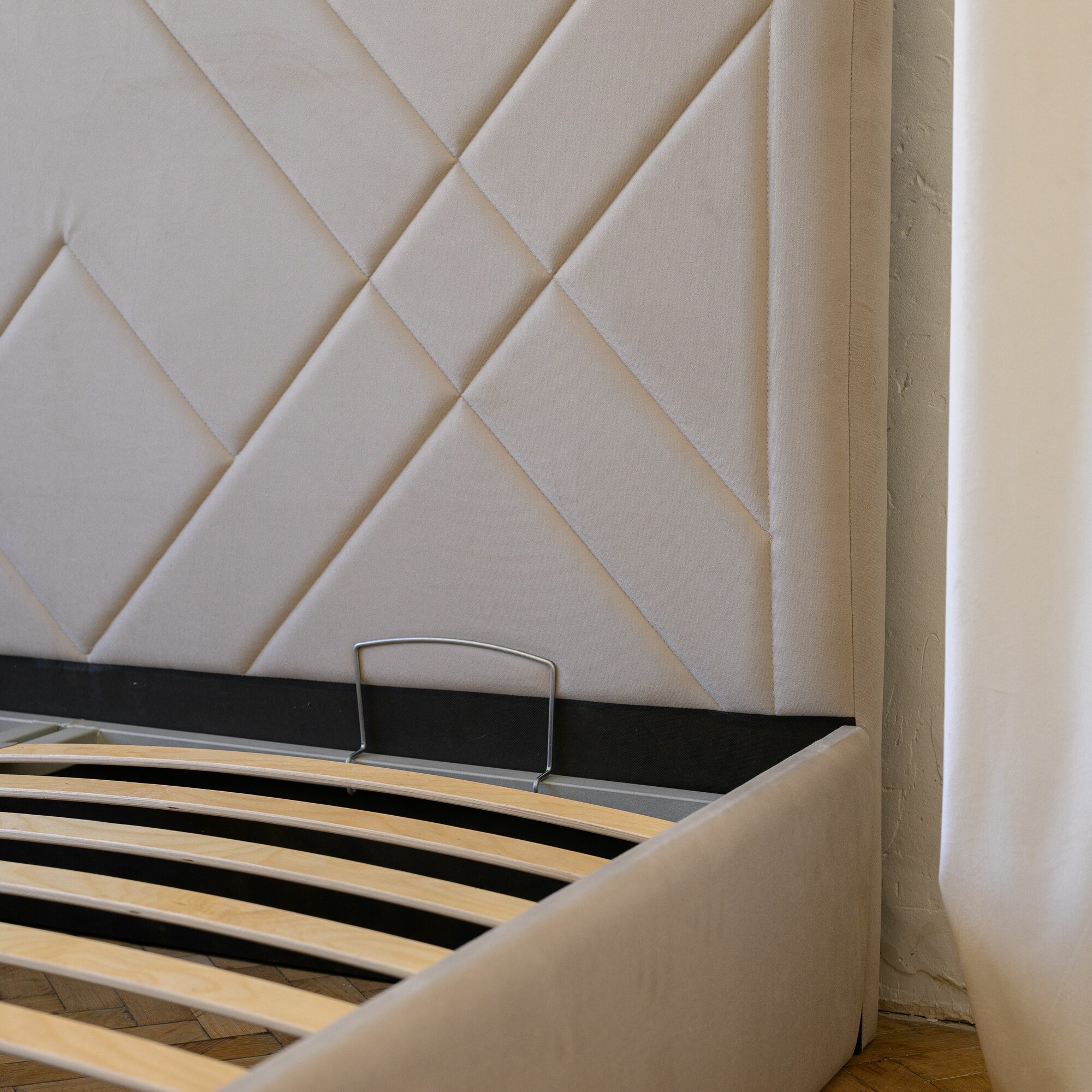 Кровать 180х200 c подъемным механизмом и бельевым ящиком Алекса бежевый