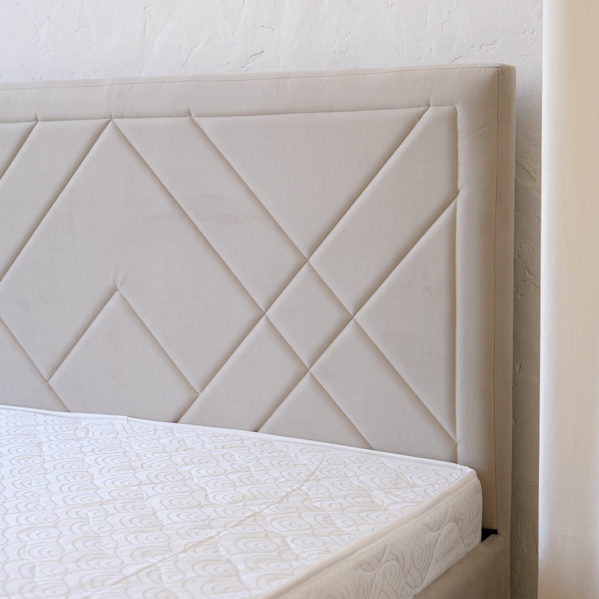 Кровать 180х200 двуспальная Алекса, с подъёмным механизмом, с ящиками, с мягким изголовьем, бежевая