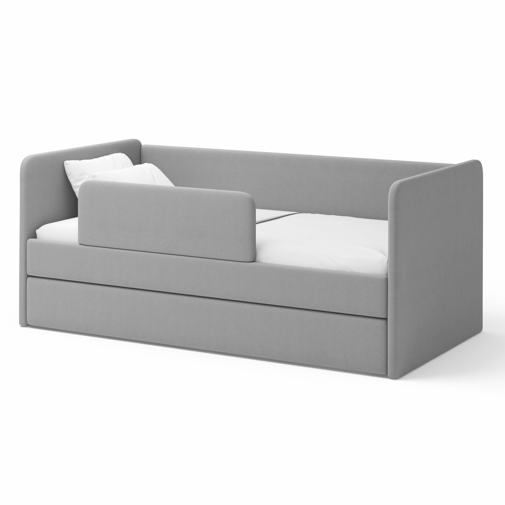 Кровать детская 180х80 Romack Jenny с бортиком и ящиком, с мягким изголовьем, Серая рогожка