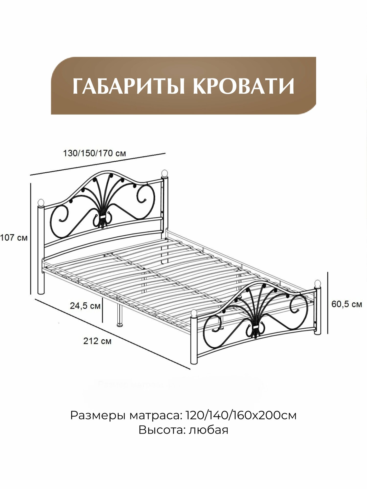 Двуспальная кровать, черная, железная, металлическая, 140х200 см интересное: