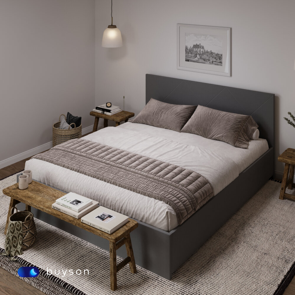 Купить Двуспальная кровать buyson BuyRest 200х180, темно-серая, микровелюр