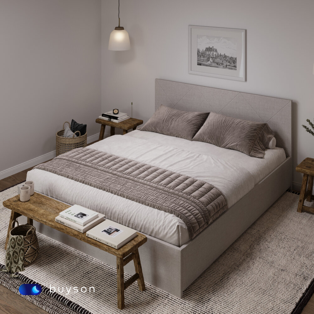 Купить Двуспальная кровать buyson BuyRest 200х180, бежевая, рогожка