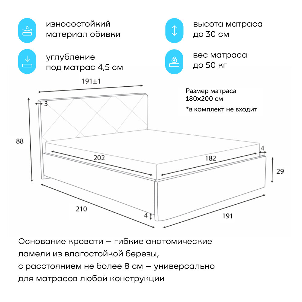 | Особенности | мягкое изголовье |