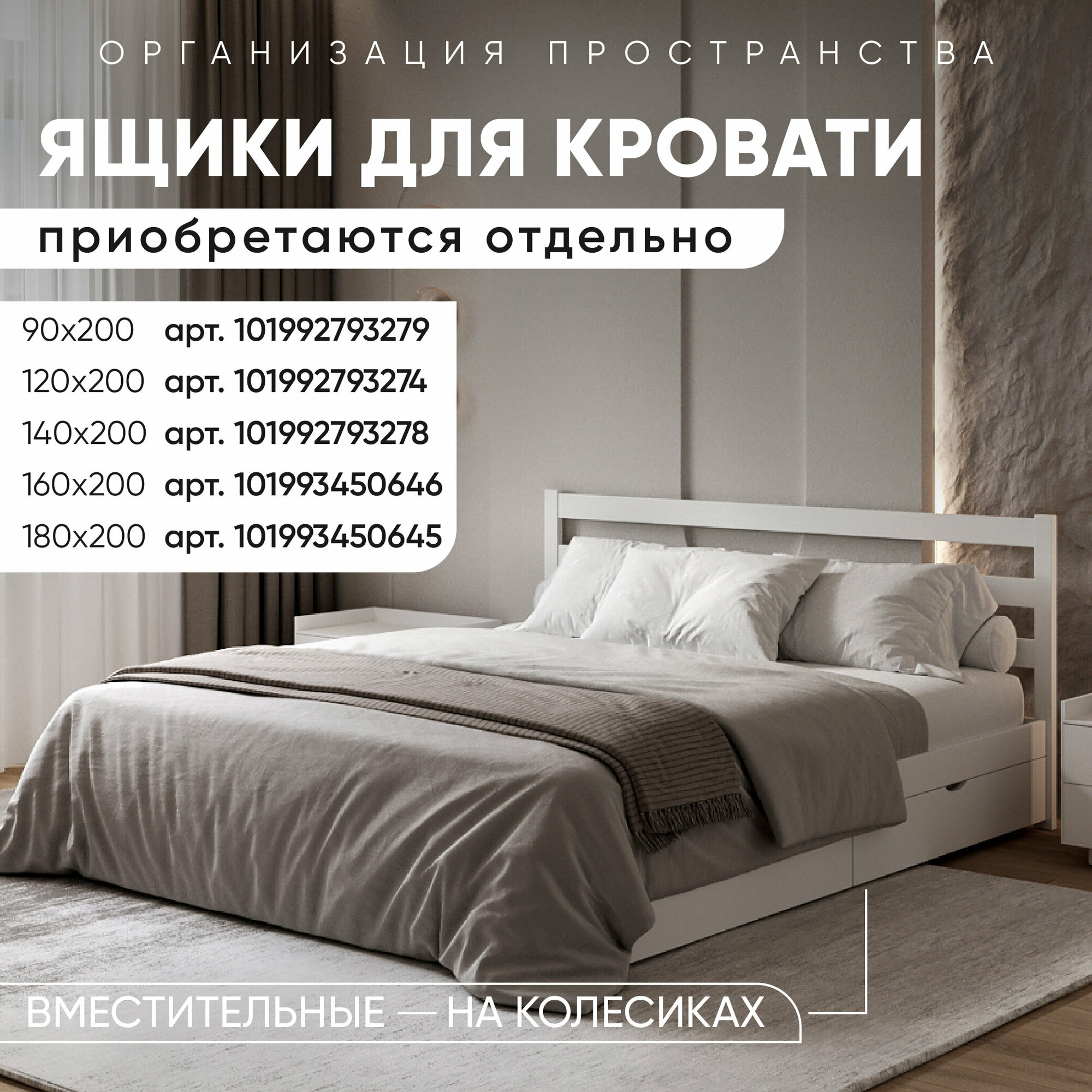 Кровать детская 200х90 с 2 выкатными ящиками, цвет Белый, Деревянная из березы, Односпальная, Подростковая, Аналог Икея