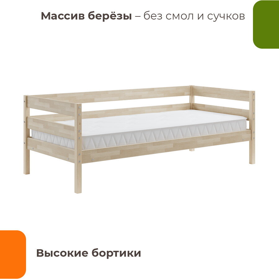 Кровать-тахта "ДомаКлёво Мечта" 90*200, массив берёзы, без обработки, высота изголовья 73 см