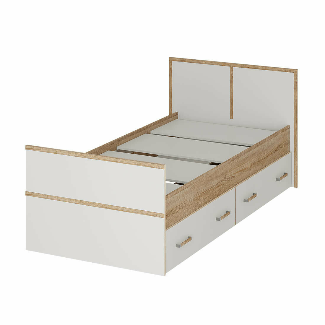 Кровать односпальная Сакура 90х200 см, с ящиками, основание настил, с изножьем, со спинкой, Дуб Сонома / Белый