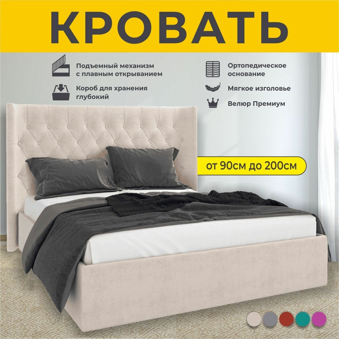 Кровать односпальная 90Х200 см Barbara, с подъемным механизмом, FABRO, с ортопедическим основанием, с мягким изголовьем, Бежевый