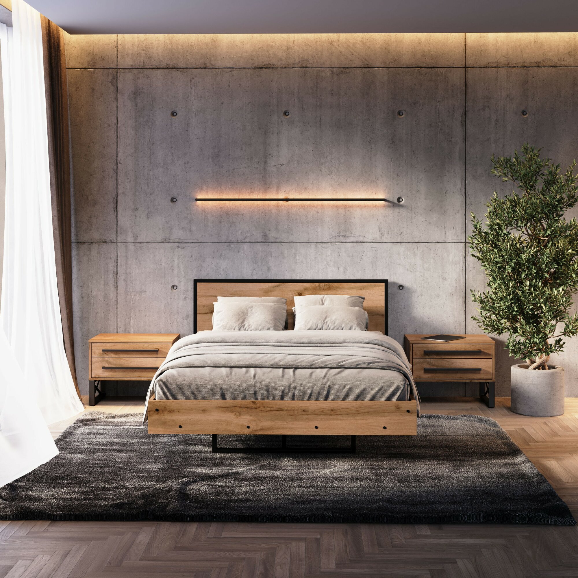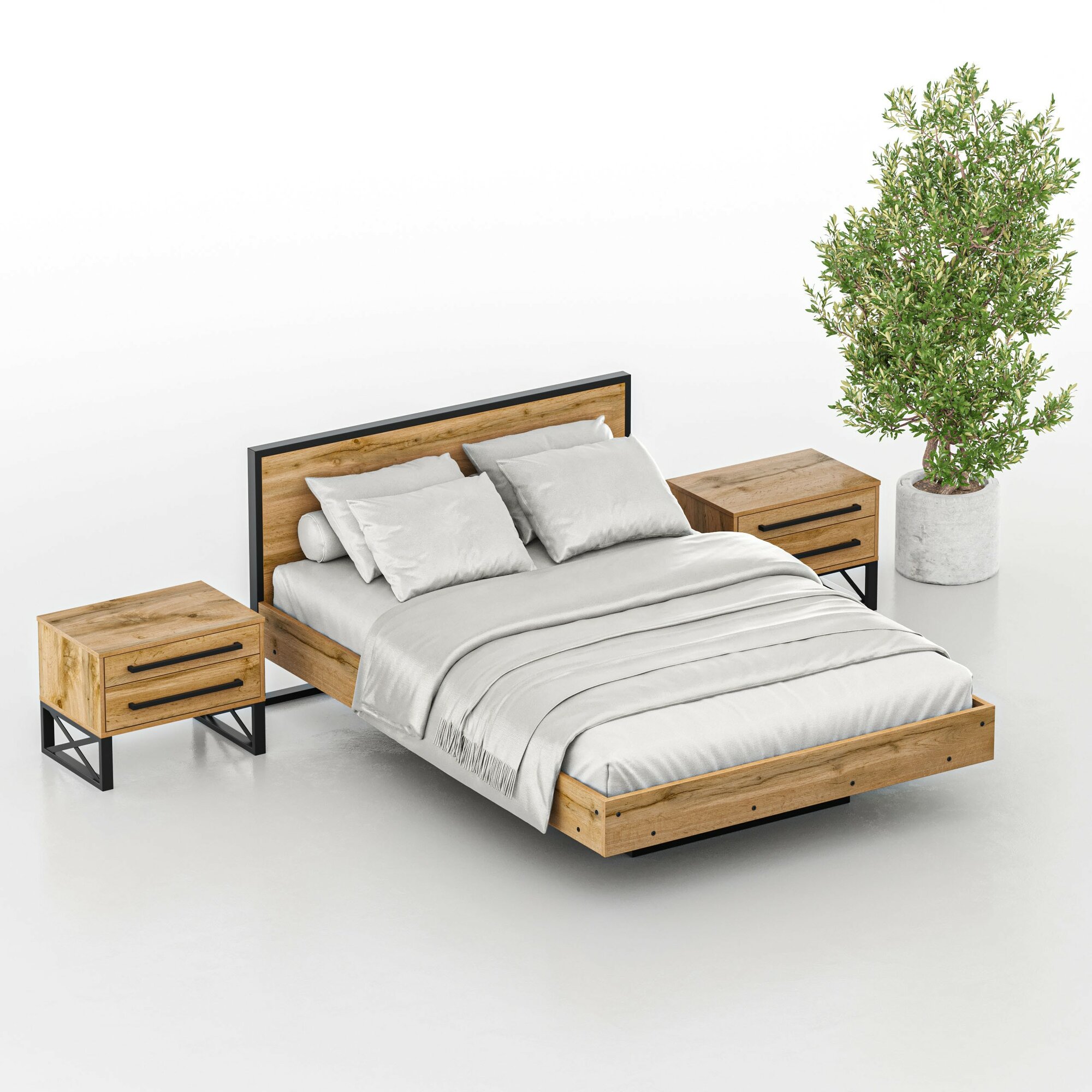 Кровать с ящиками 1800 с двумя тумбочками Камелия, цвет дуб сонома, ШхГхВ 296х217х78,2 см, спальное место 1800х2000 мм, без матраса, основание есть