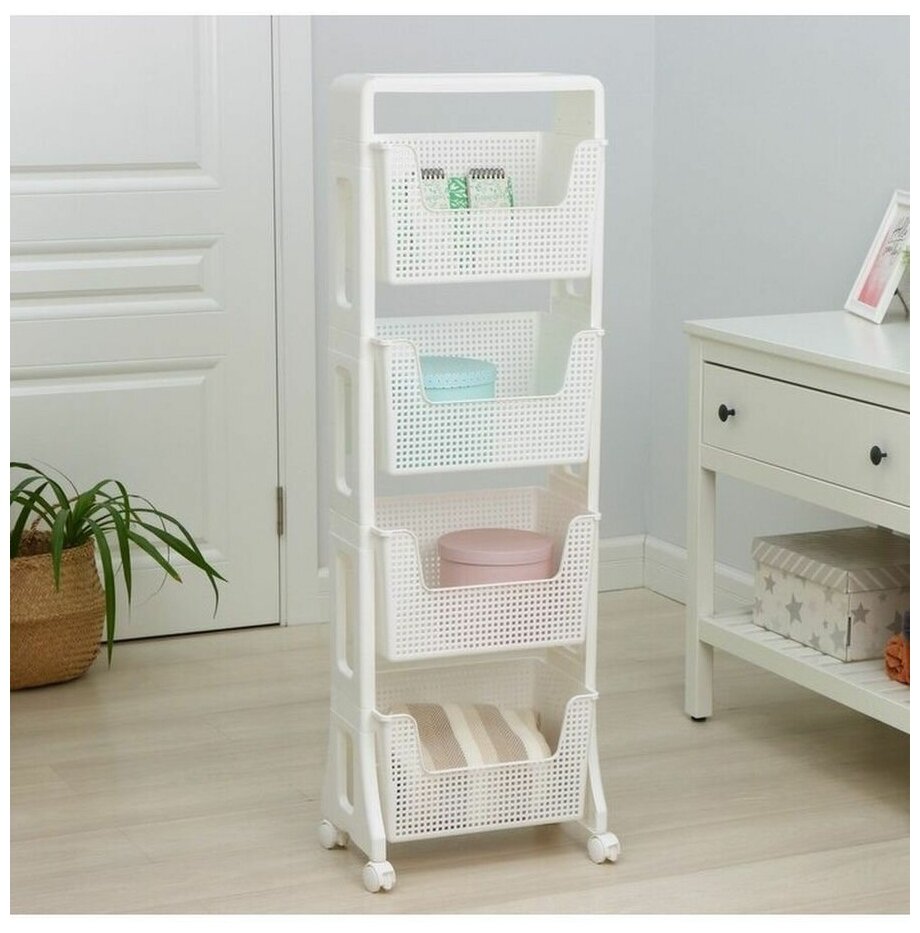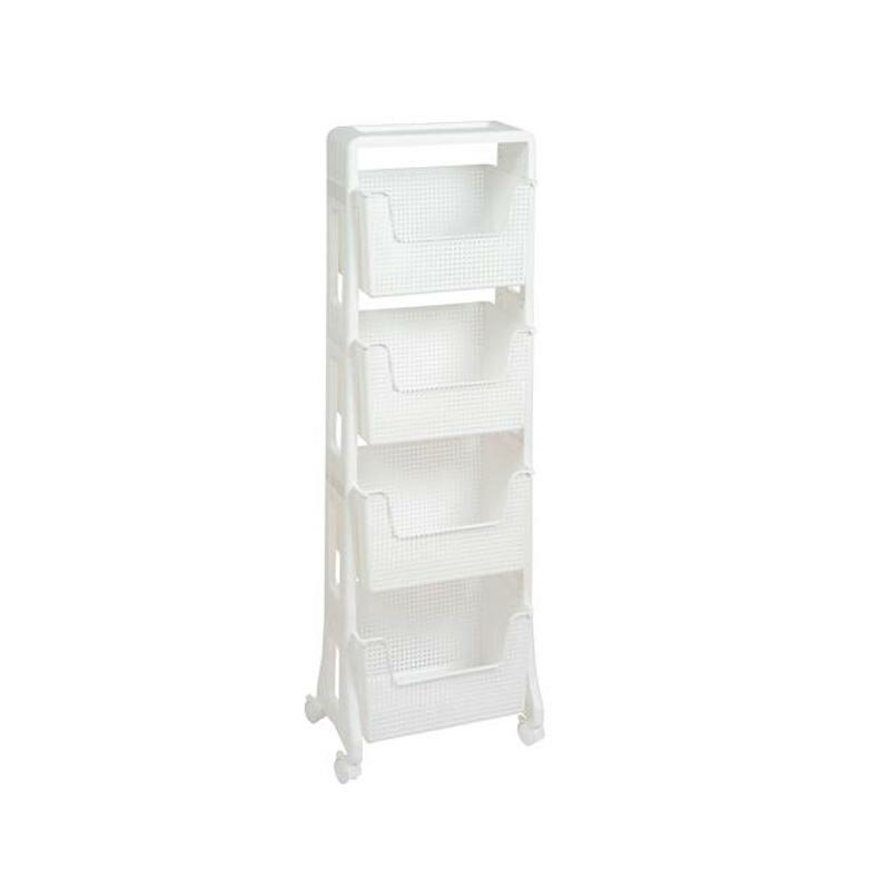Этажерка на колесиках Лофт 4 яруса, цвет белый / пластиковый органайзер для хранения косметики для ванной на колесах / подставка напольная для кухни