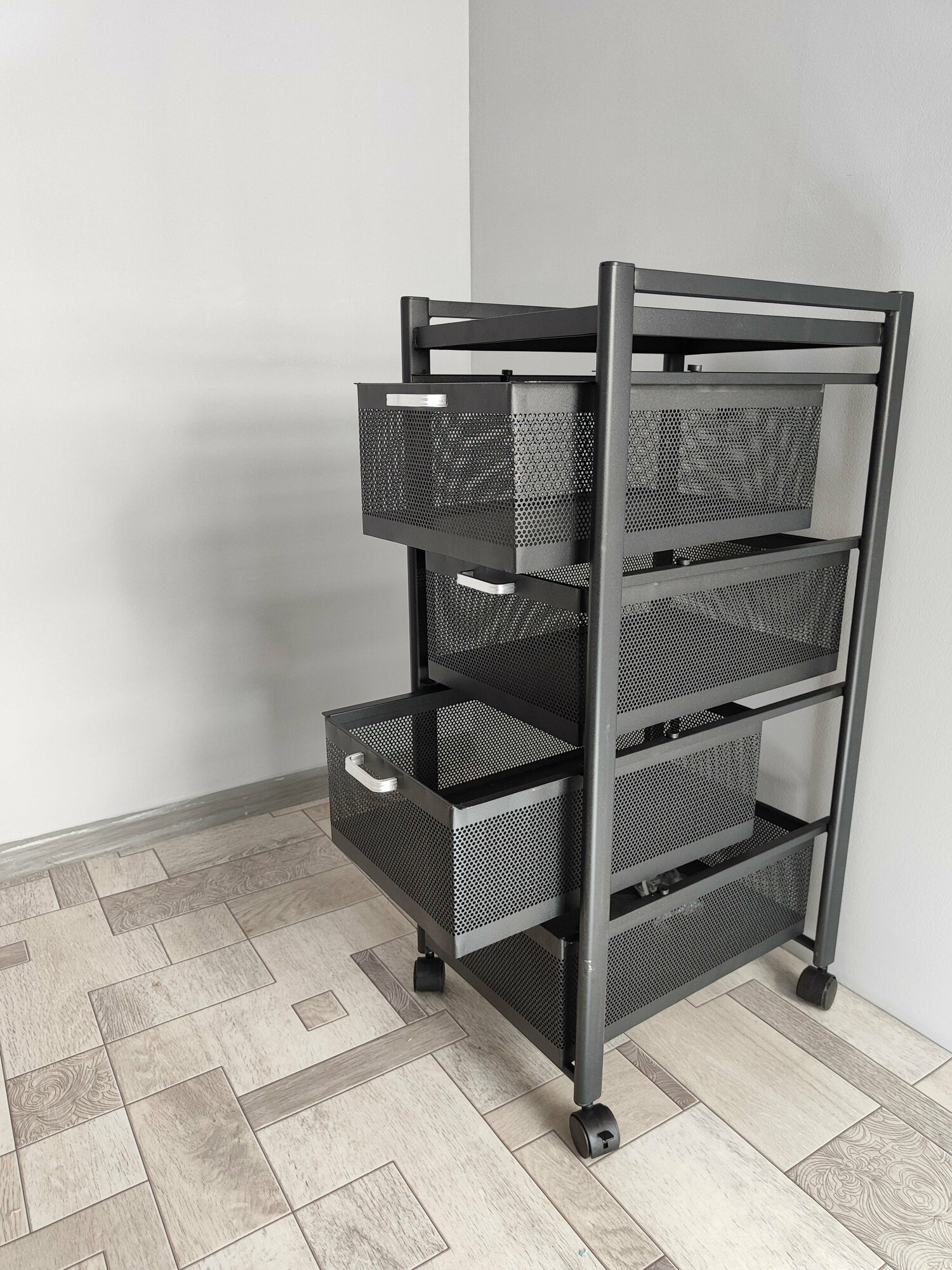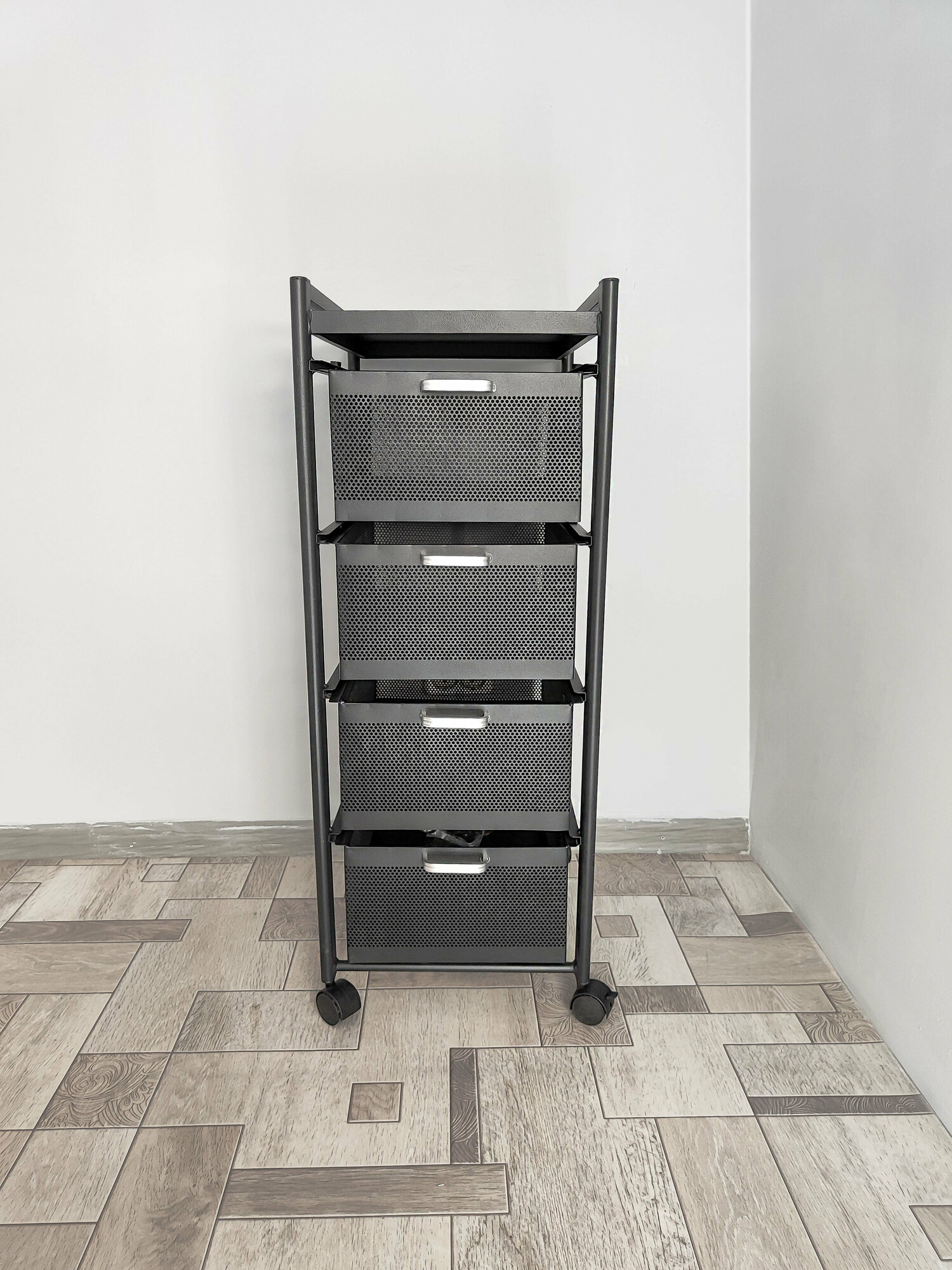 Купить Этажерка металлическая 4-х ярусная 31*41*73 см на колесах выдвижные корзины черный Baizheng