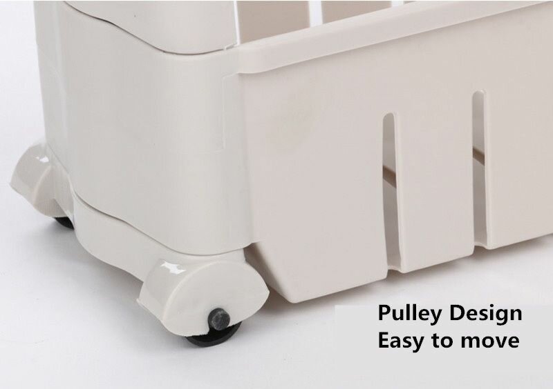 Белый стеллаж-этажерка для кухни, ванной на колесиках, 4 полки