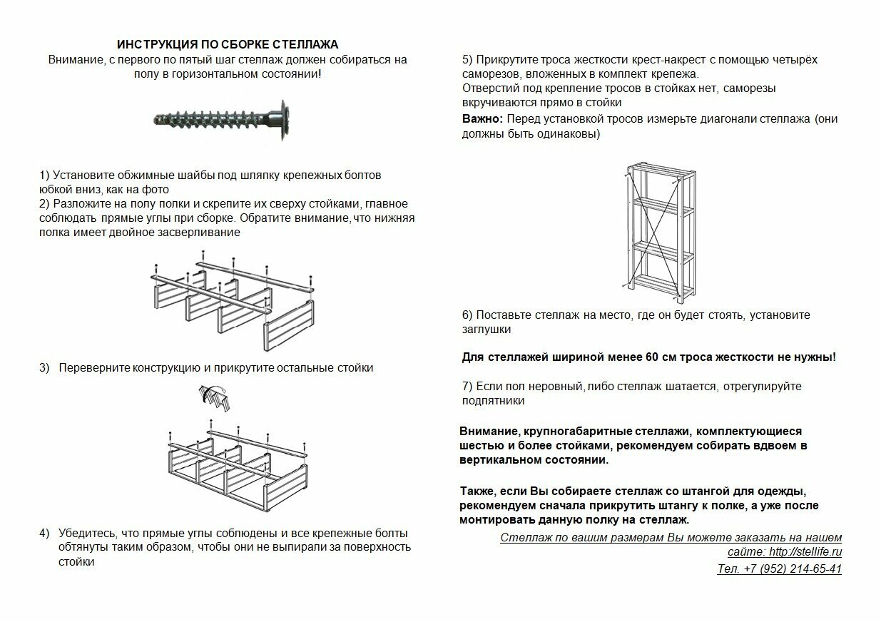 | Дополнительная информация | 4 стойки 1800 мм, 5 полок 890х325 мм, регулируемые подпятники, мебельные стяжки, прижимные шайбы, троса жесткости с саморезами для их крепления, заглушки (цвет сосна) и подробная пошаговая инструкция с рисунками |