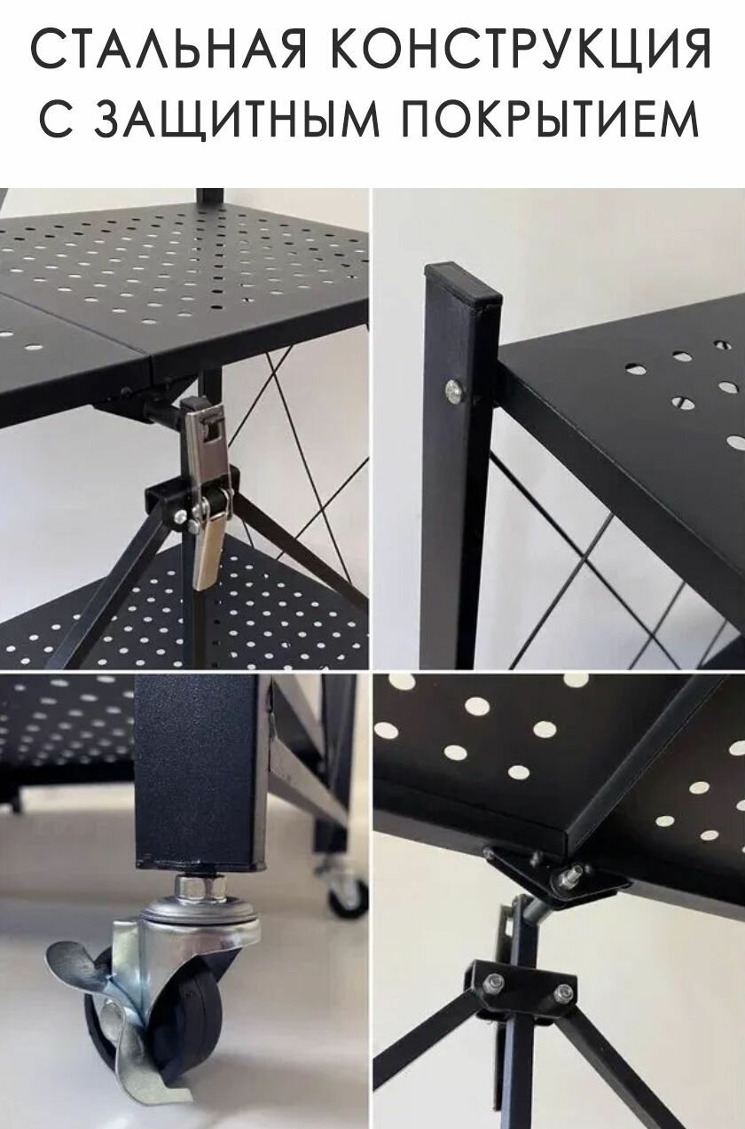 Купить Складной металлический стеллаж 126.5 x 73 х 40 см. 4 яруса, цвет черный / Этажерка на колесах металлическая (4 полки)