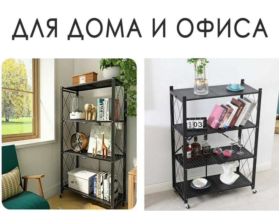 Складной металлический стеллаж 126.5 x 73 х 40 см. 4 яруса, цвет черный / Этажерка на колесах металлическая (4 полки) интересное: