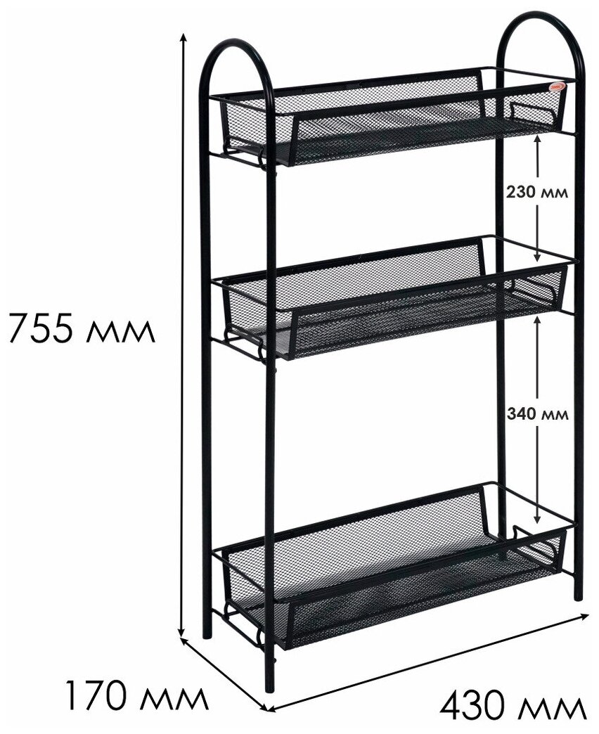Этажерка ЗМИ Ладья 13 для кухни узкая напольная металлическая, черная