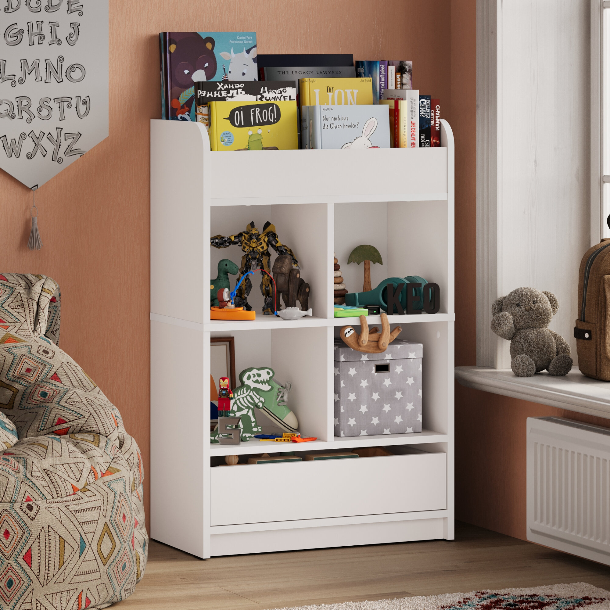 Купить Стеллаж напольный Кео СТЖ-433 белый молочный с ящиком полками для игрушек книг в детскую для спальни балкона 930х304х602 мм
