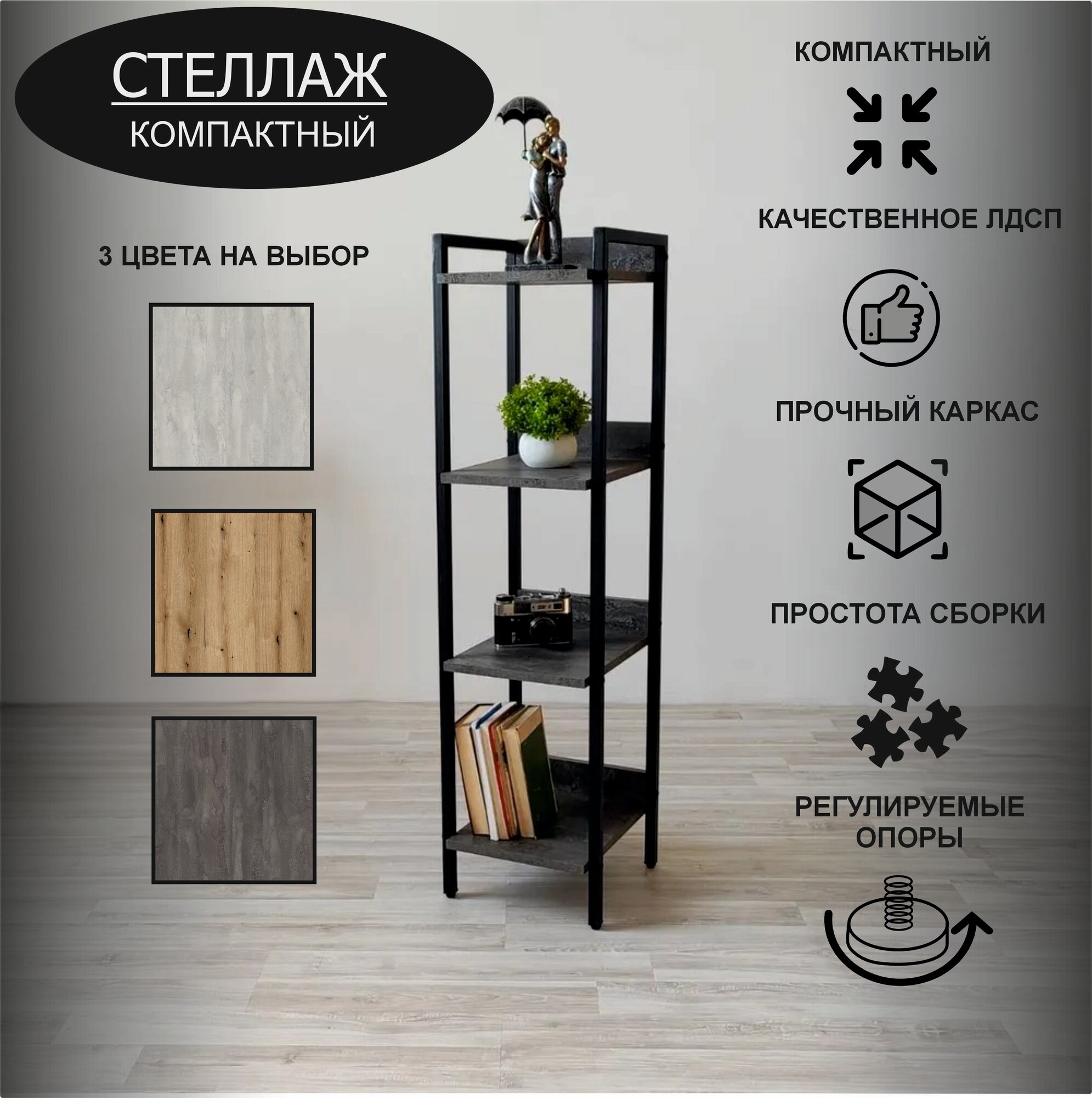 Стеллаж AlisMi в стиле лофт с 4 полками и максимальной нагрузкой до 100кг