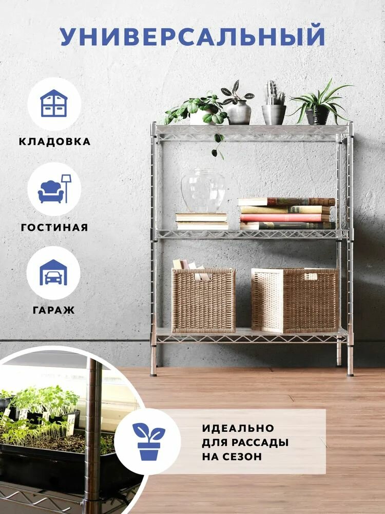 СохранитьСтеллаж металлический напольный GASTRORAG 1424-30/3, 76х61х36 см, этажерка лофт с 3 полками, система хранения для балкона, лоджии, прихожей, кухни, гостиной, полка для игрушек, книг, подставка для цветов, рассады интересное: