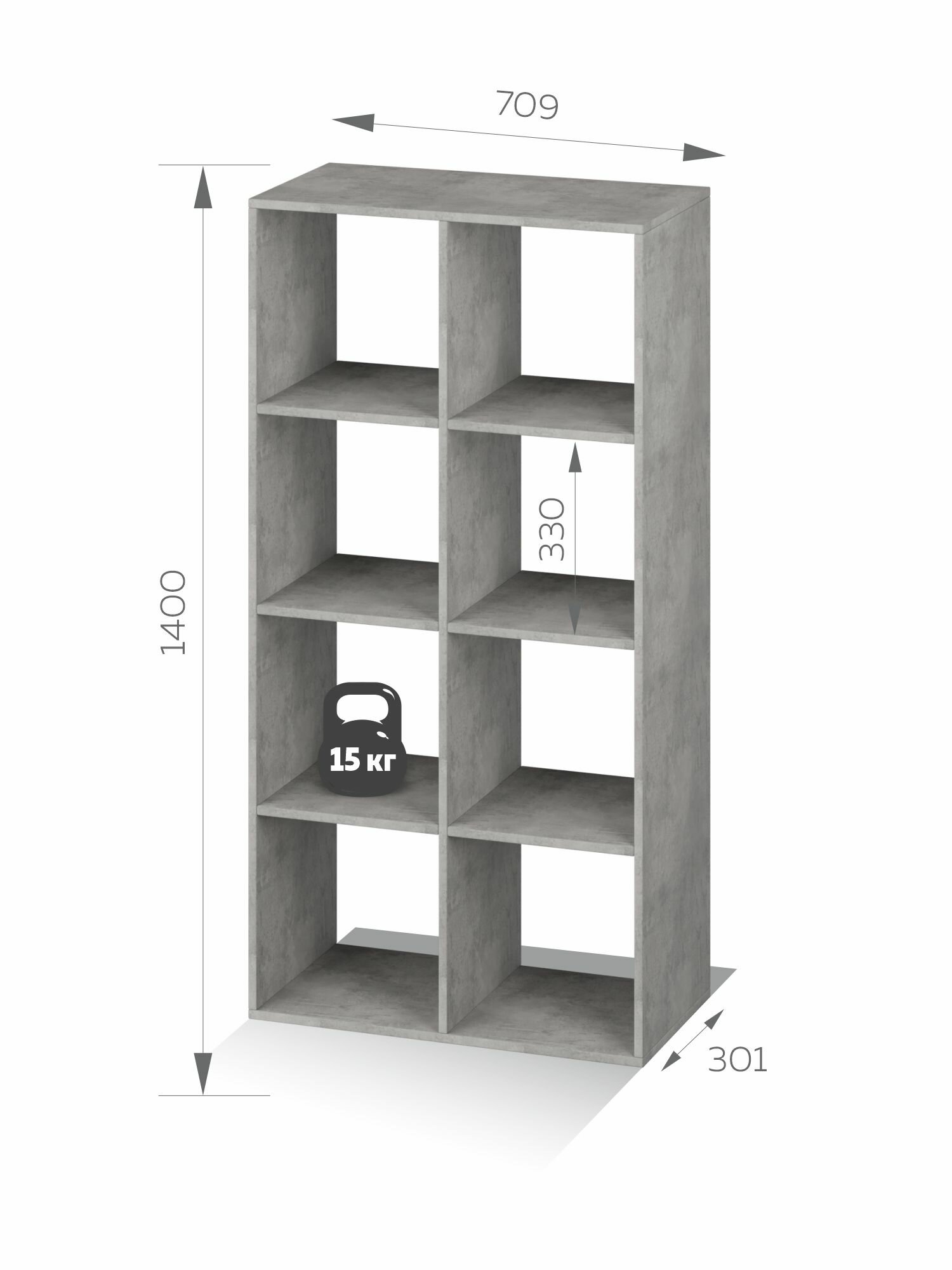 Купить Стеллаж Ник 8 ячеек 70.9х30.1х140, Мебельная компания Е1, Бетон