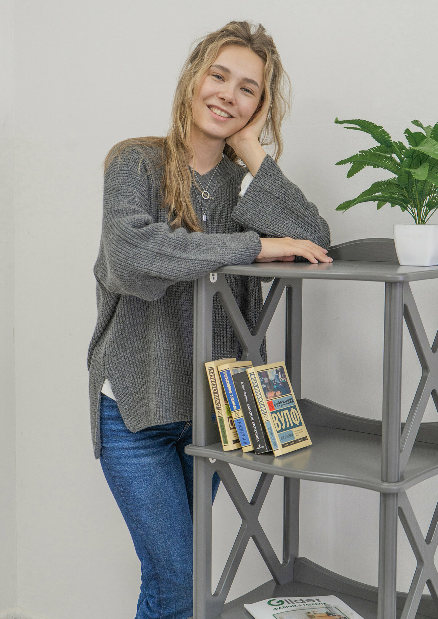 Этажерка-стеллаж деревянный напольный Glider Модерн 4, цвет серый ясень