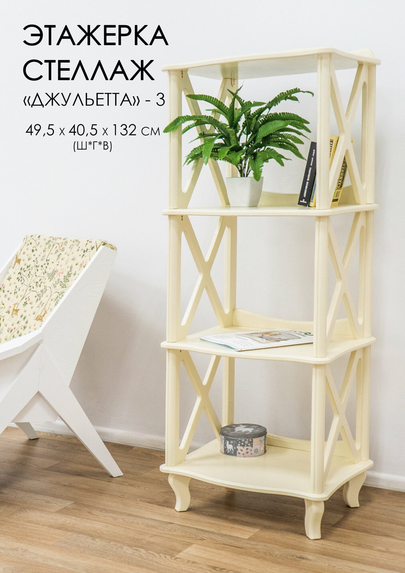 Этажерка-стеллаж деревянный напольный Glider Джульетта 3, цвет бежевый интересное: