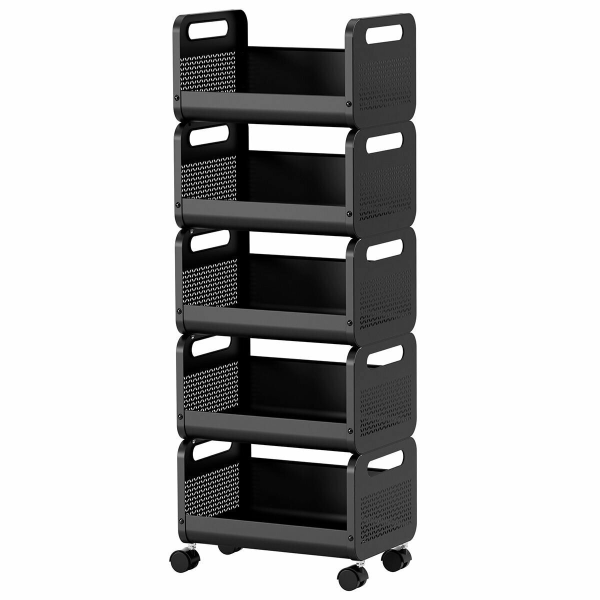 Купить Многофункциональная черная пятиярусная этажерка на колесах для хранения