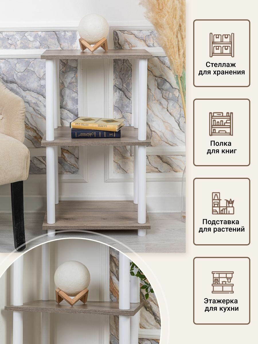 Стеллаж деревянный GASTRORAG 0770/3W, полка напольная, этажерка для кухни, ванной, гостиной, спальни, 3 полки ЛДСП, размеры 45 х 30 х 77 см интересное: