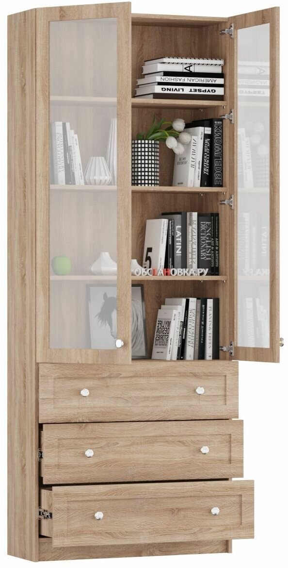 Стеллаж ОБСТАНОВКА. РУ Билли 39 с ящиками и распашными дверьми (стекло), Сонома