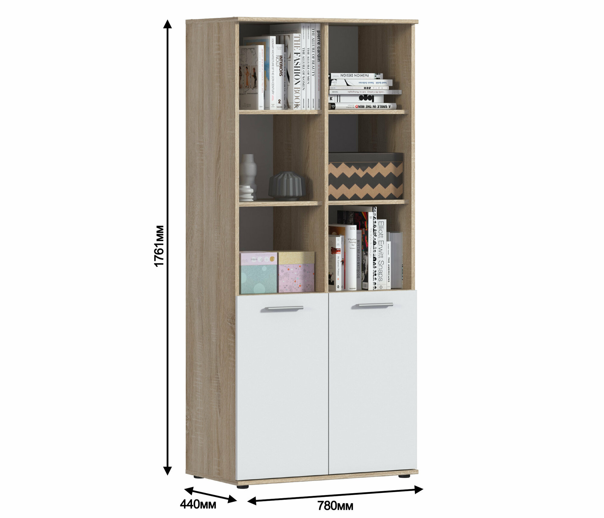 Стеллаж Мамбо СБ-2757 с 6 полками, с 2 закрытыми секциями, Дуб Сонома/Белый 78х176х44 см интересное: