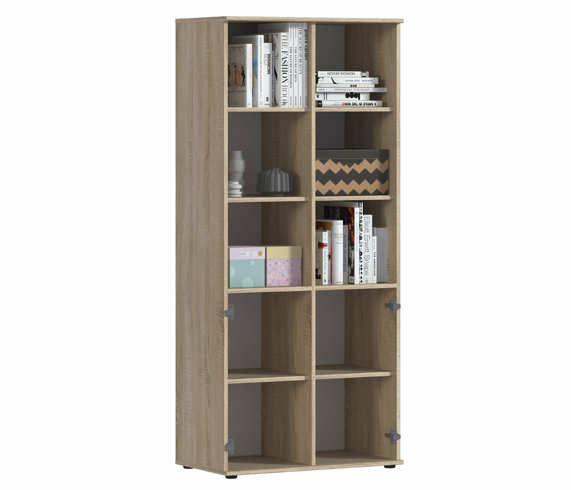 Стеллаж столплит Мамбо СБ-3214 с 8 полками, с 2 дверцами дуб сонома, белый 75х144х28 см