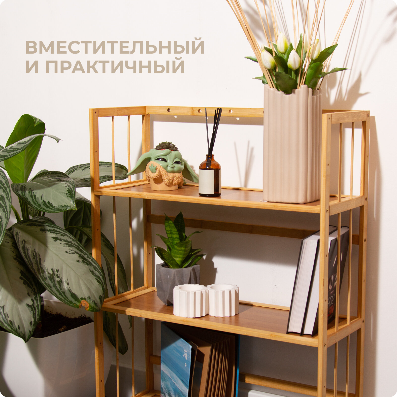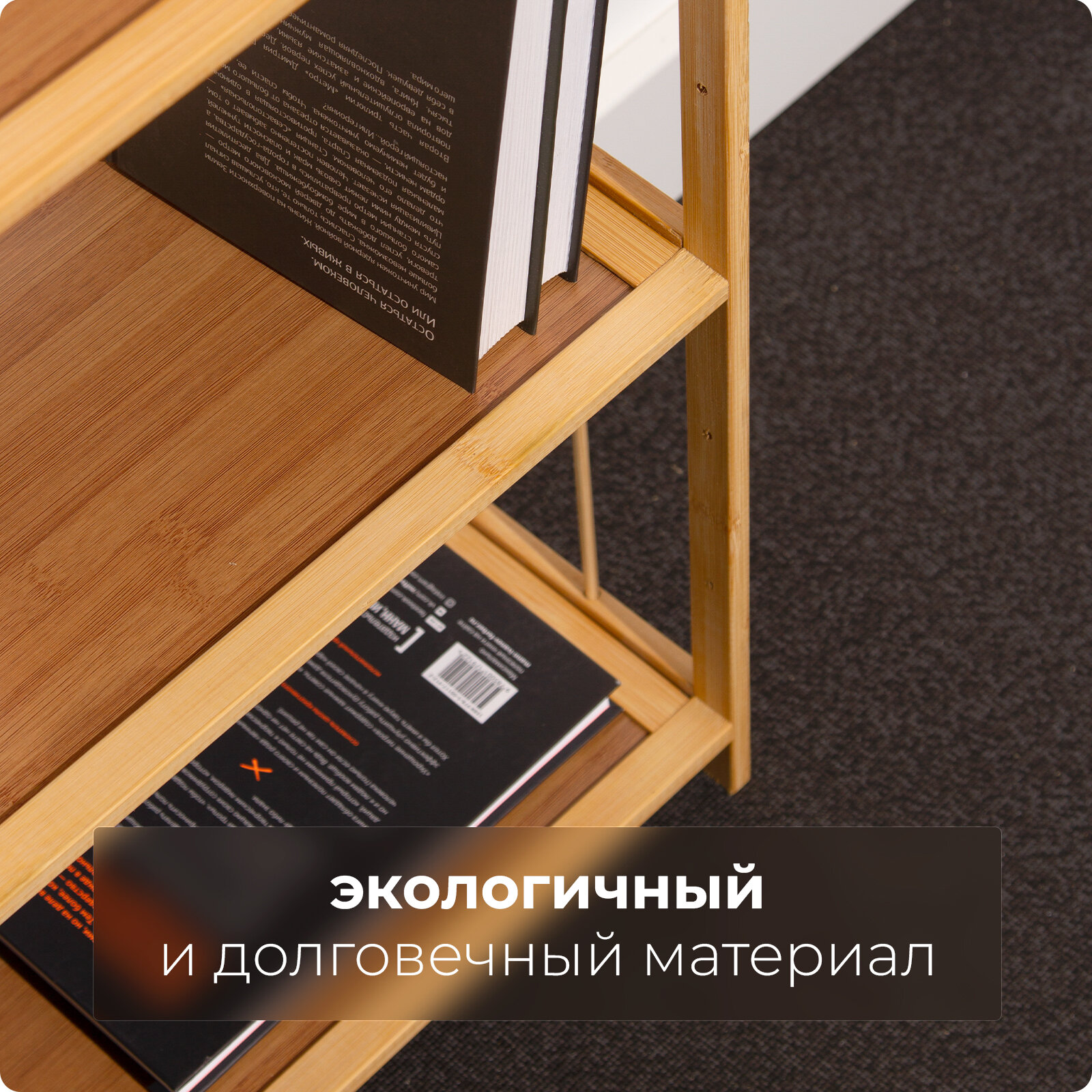 Стеллаж деревянный 3 полки, 82х60х25 см Hans&Helma из бамбука универсальная этажерка для игрушек, книг, дача интересное: