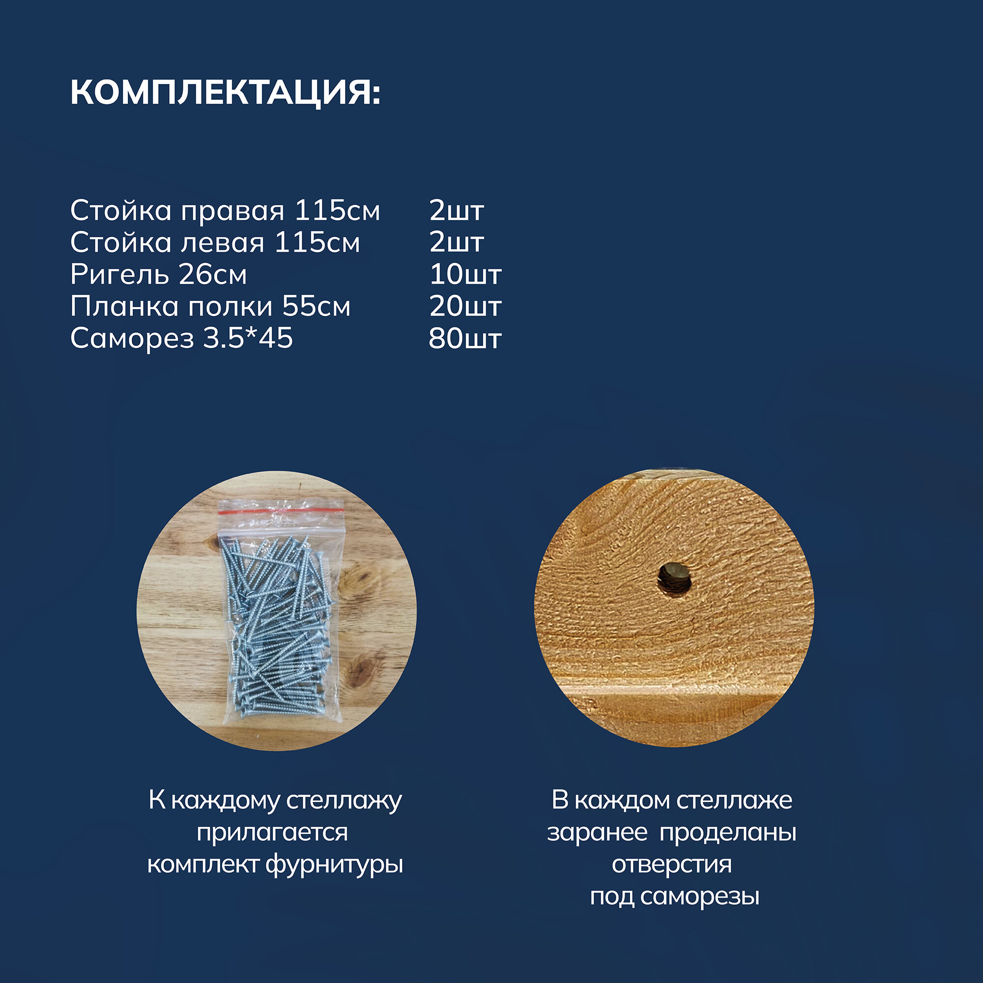 Стеллаж деревянный напольный, 115х30х58.5, натуральное дерево см