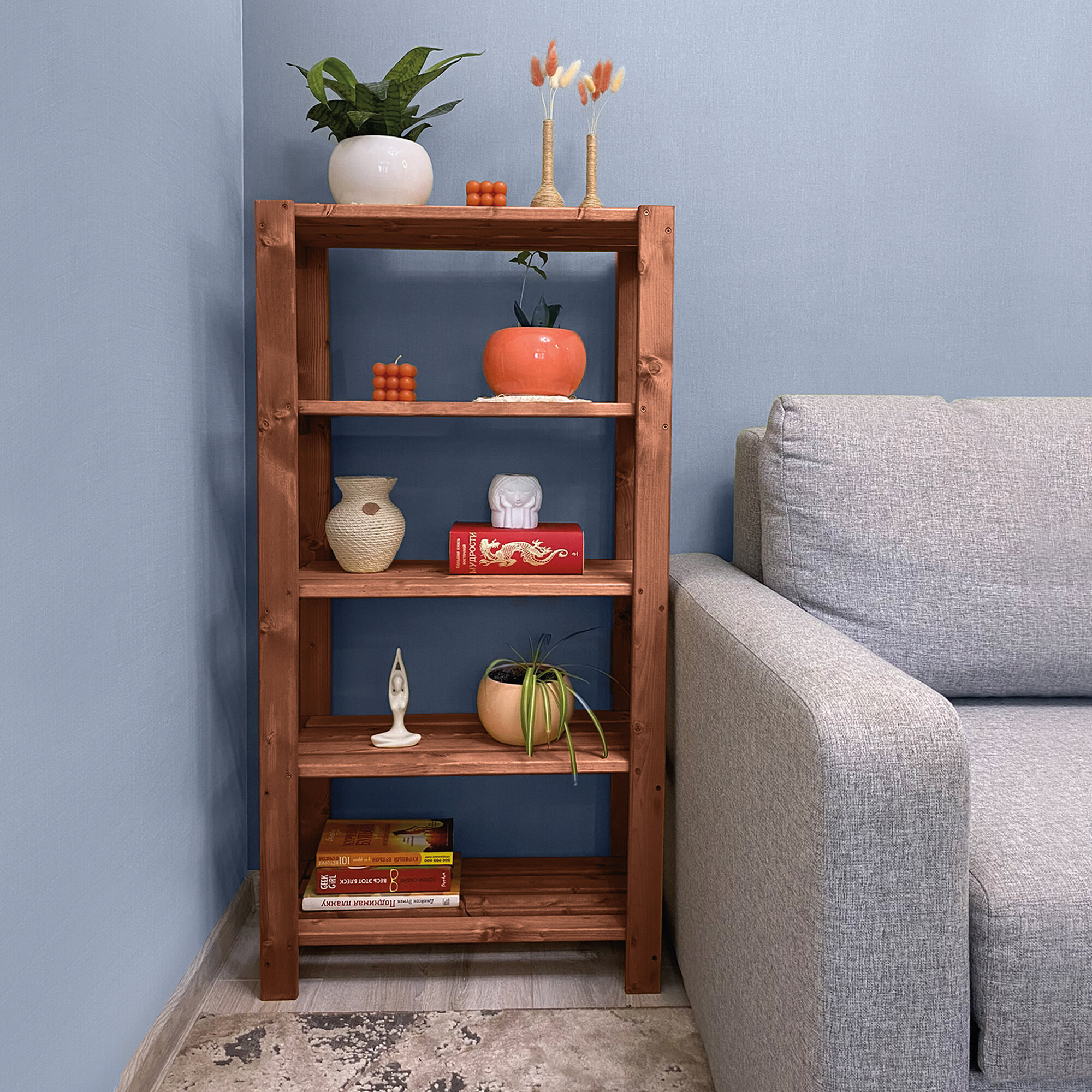 Стеллаж Микея "Лофт" 115 х 30 х 58,5 см, 5 полок, массив ели, орех