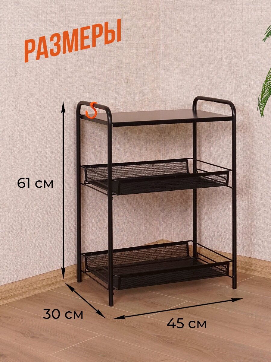 Этажерка для ванной, для кухни с корзинами. Стеллаж металлический со столиком для хранения вещей интересное: