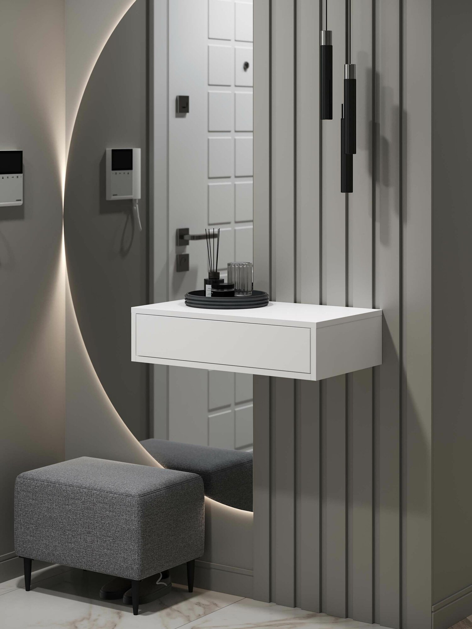 Туалетный столик цвет светло-серый, ящик открывание от нажатия push pull, модель Нью-Йорк, 75х34х15 см