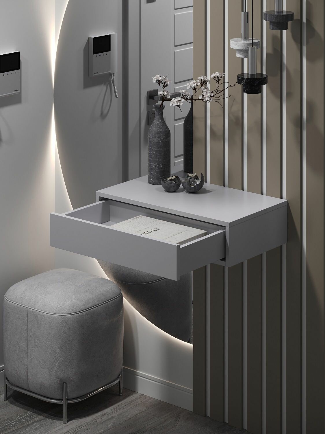 Туалетный столик цвет светло-серый, ящик открывание от нажатия push pull, модель Нью-Йорк, 75х34х15 см
