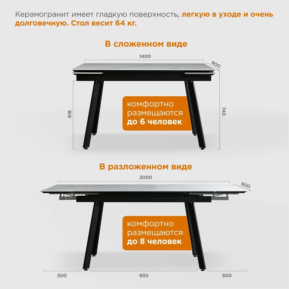 Стол кухонный раздвижной с керамической столешницей Герцог белый, 1400*800*740 мм интересное: