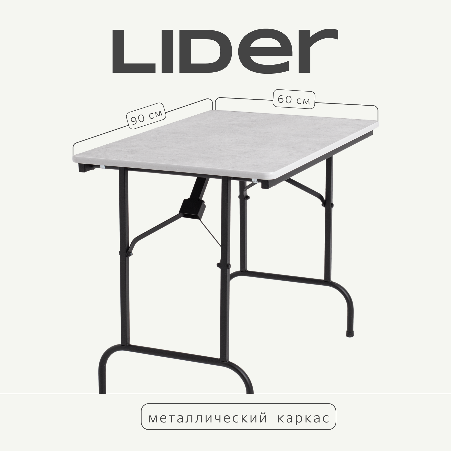 Стол складной раскладной прямоугольный кухонный, письменный, 60х120х75 см столешница - под бетон, каркас - черный