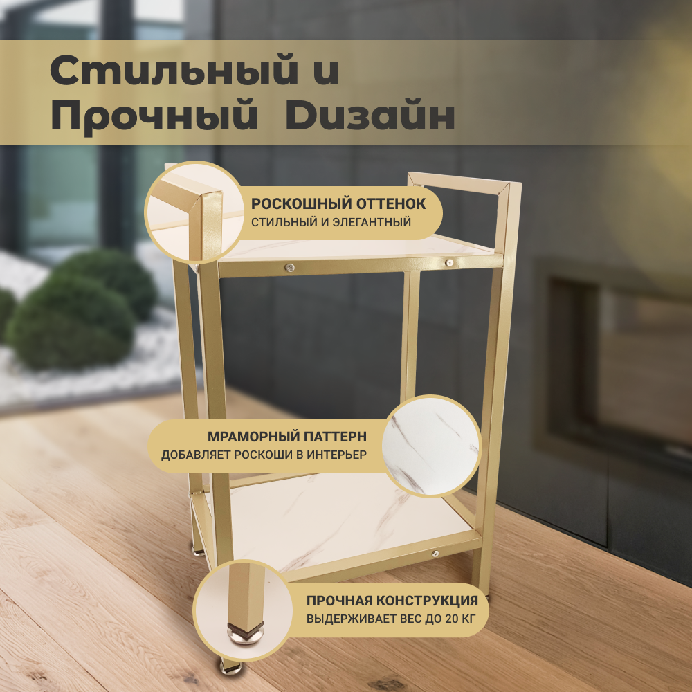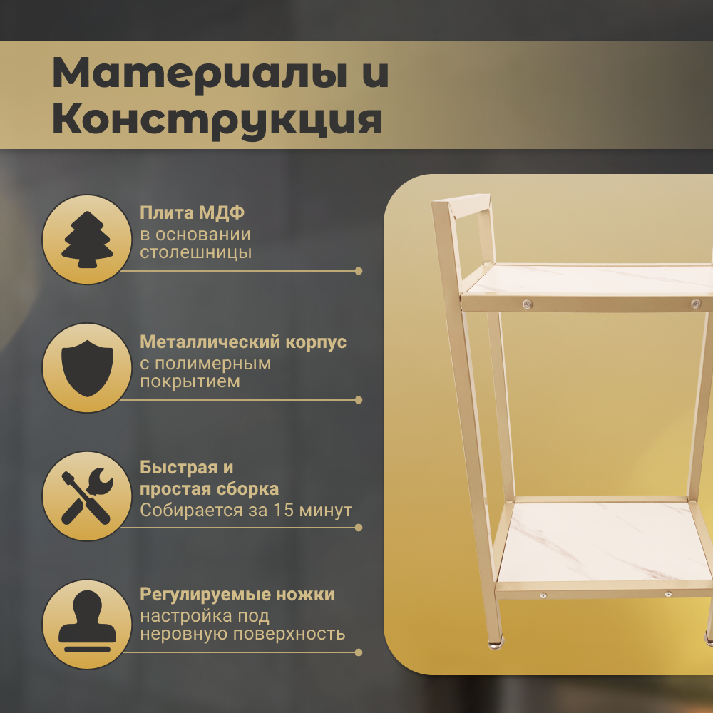 Столик с полкой Homium Porto, прикроватный столик с полкой, тумбочка прикроватная, золотистый, 40х25х75 см