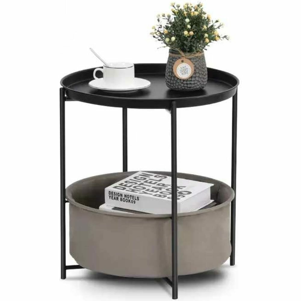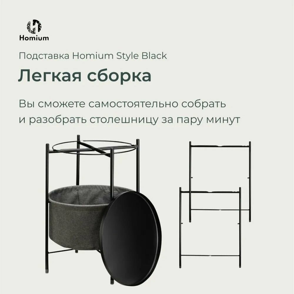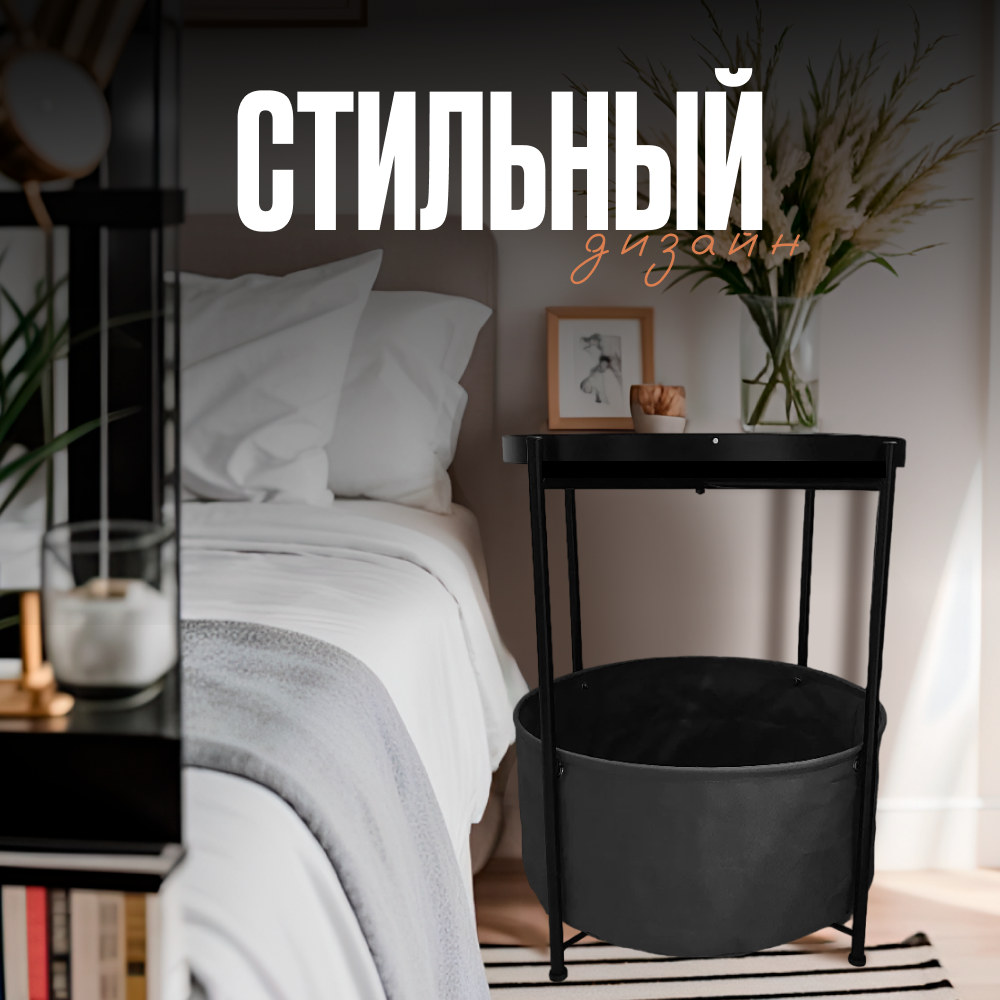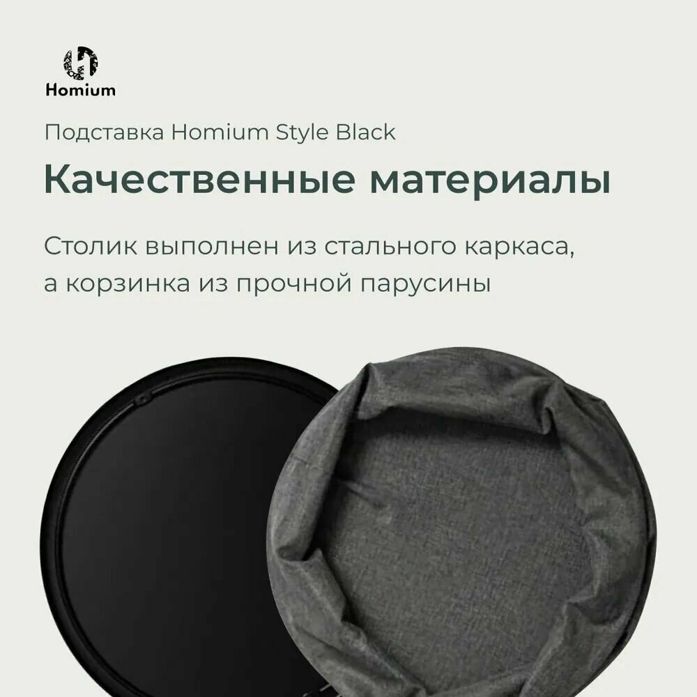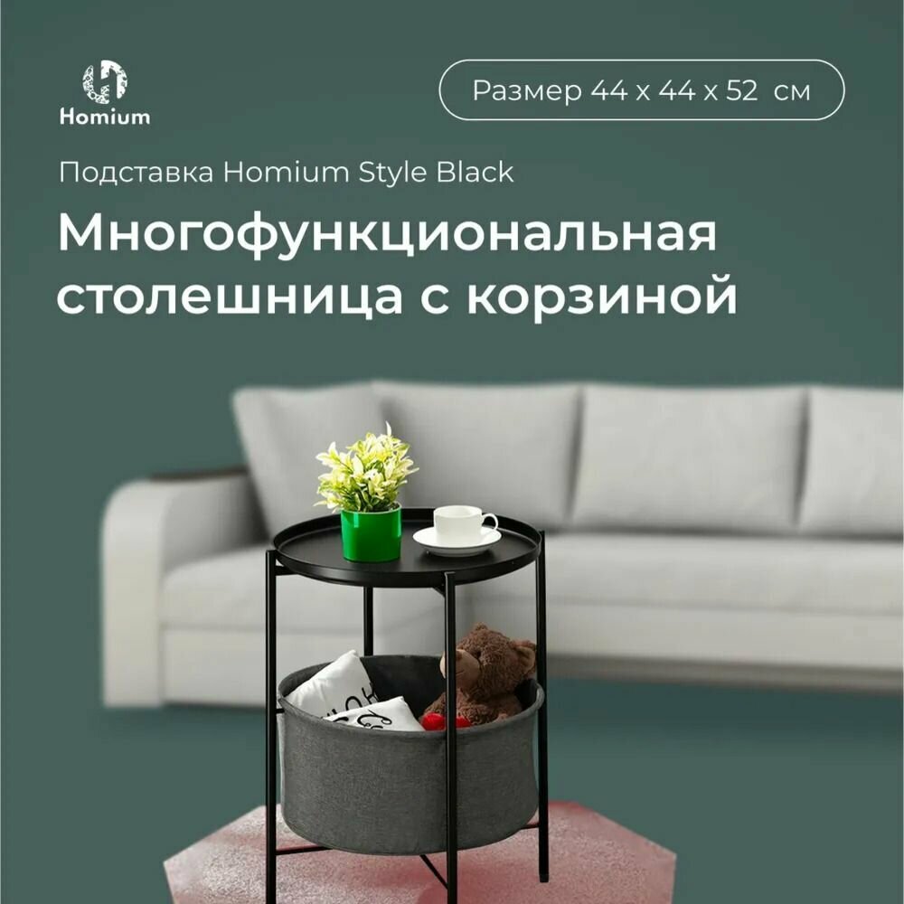 Стол журнальный с корзиной, приставной круглый металлический столик, Homium Style, цвет черный (44*44*52)