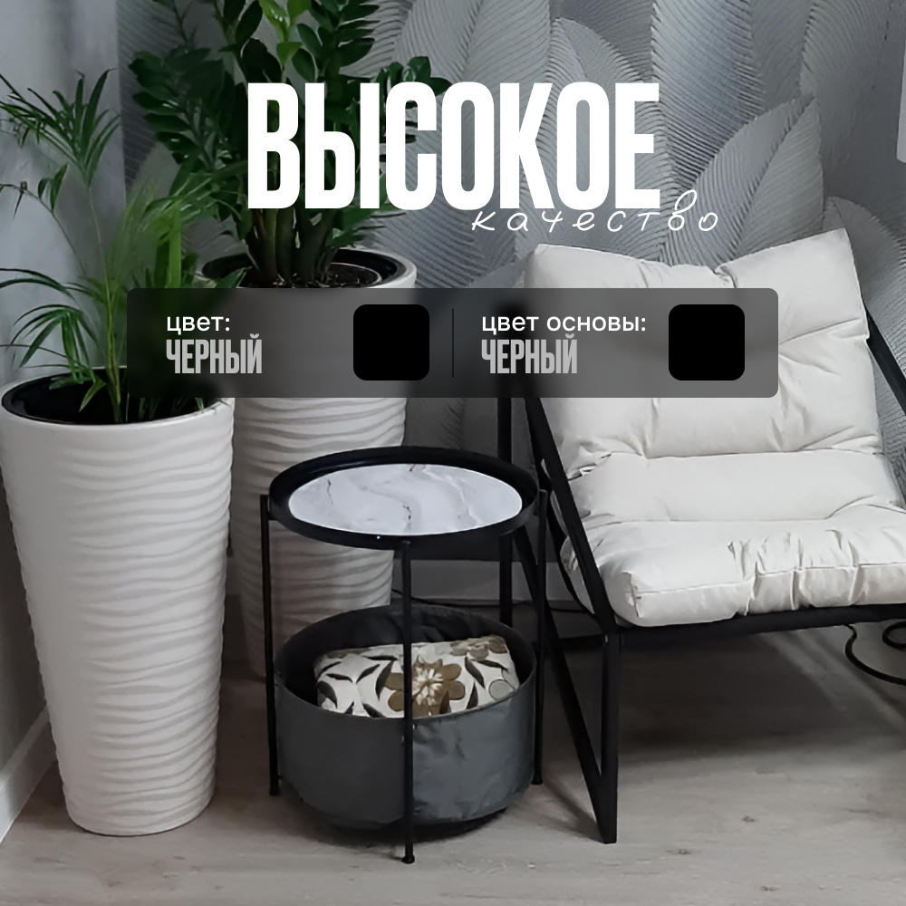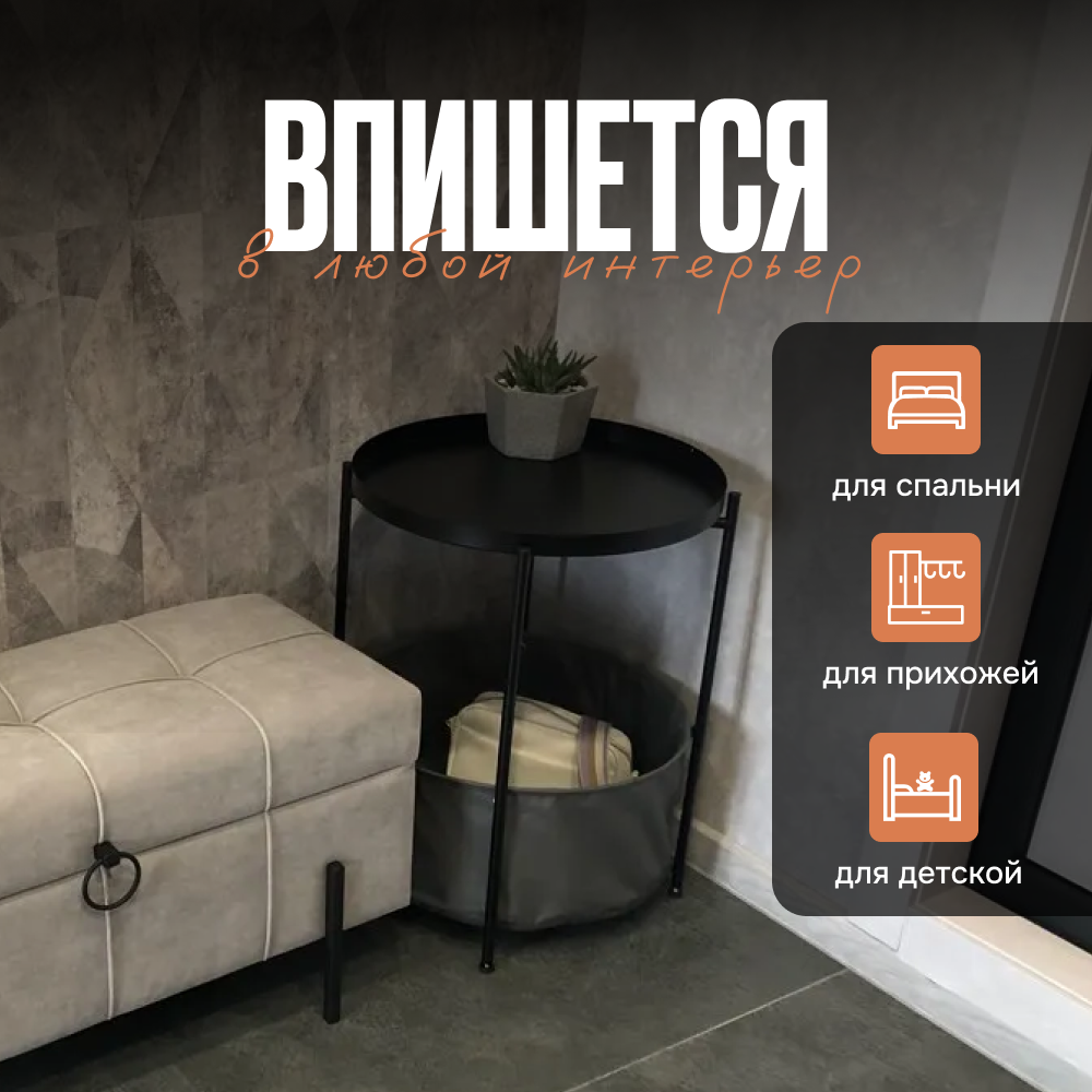 СохранитьСтол журнальный кофейный лофт с корзиной, приставной круглый металлический столик, поднос Homium ZDK Style, цвет черный (44*44*52) интересное: