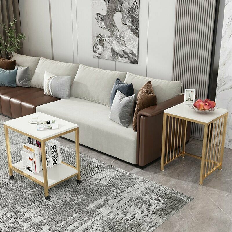 Столик с полкой Homium Porto, прикроватный столик с полкой, тумбочка прикроватная, золотистый, 40х25х75 см