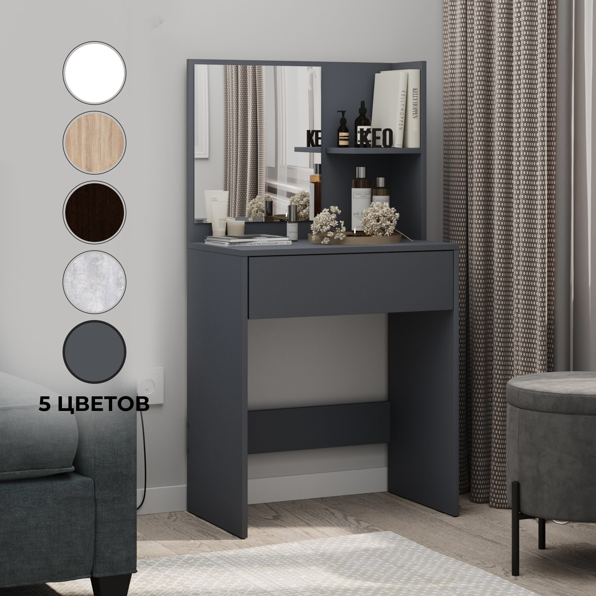 Туалетный столик с зеркалом графитовый с открытой полкой и выдвижным ящиком Кео СТЛ-110 графит