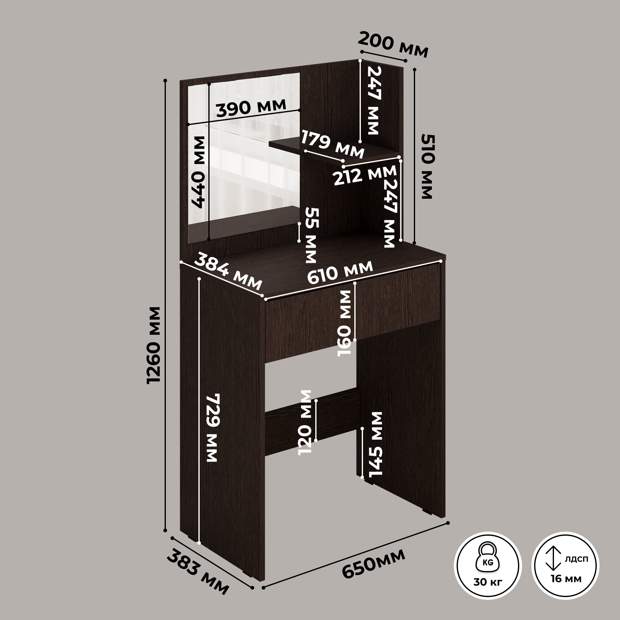 Туалетный столик с зеркалом венге с открытой полкой и выдвижным ящиком Кео 126 х 65 х 38,4 см СТЛ-110