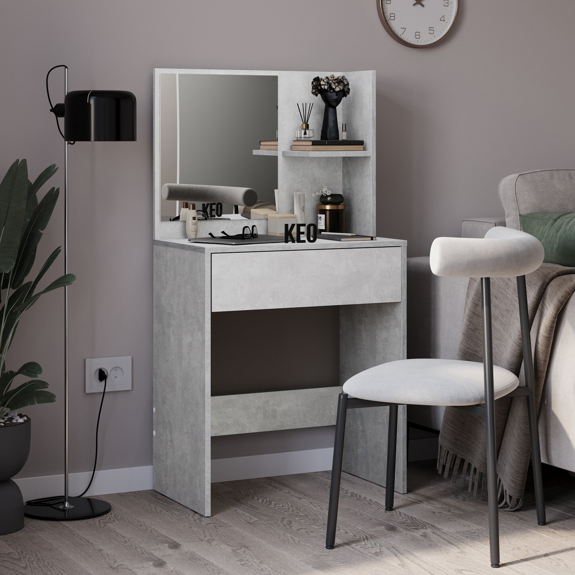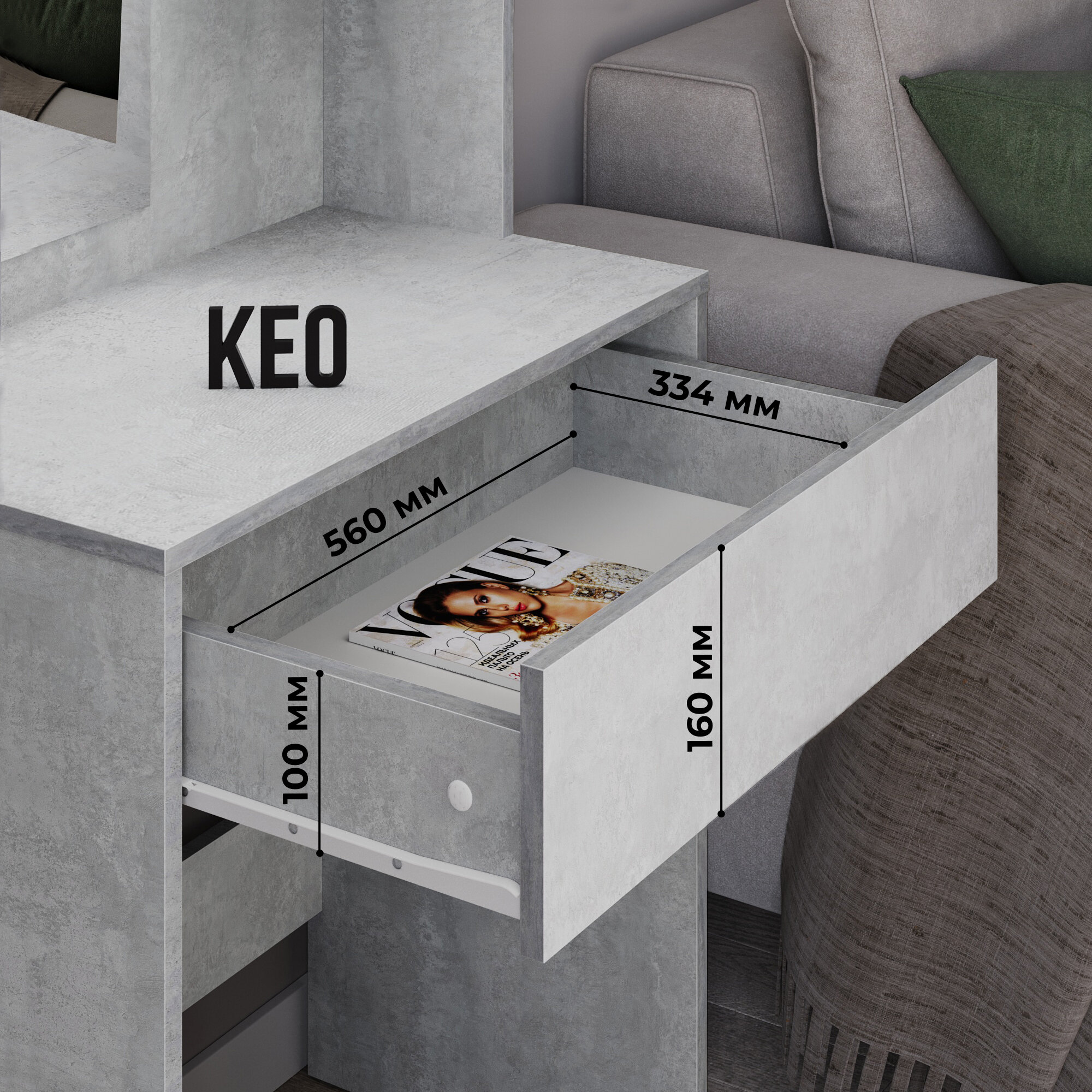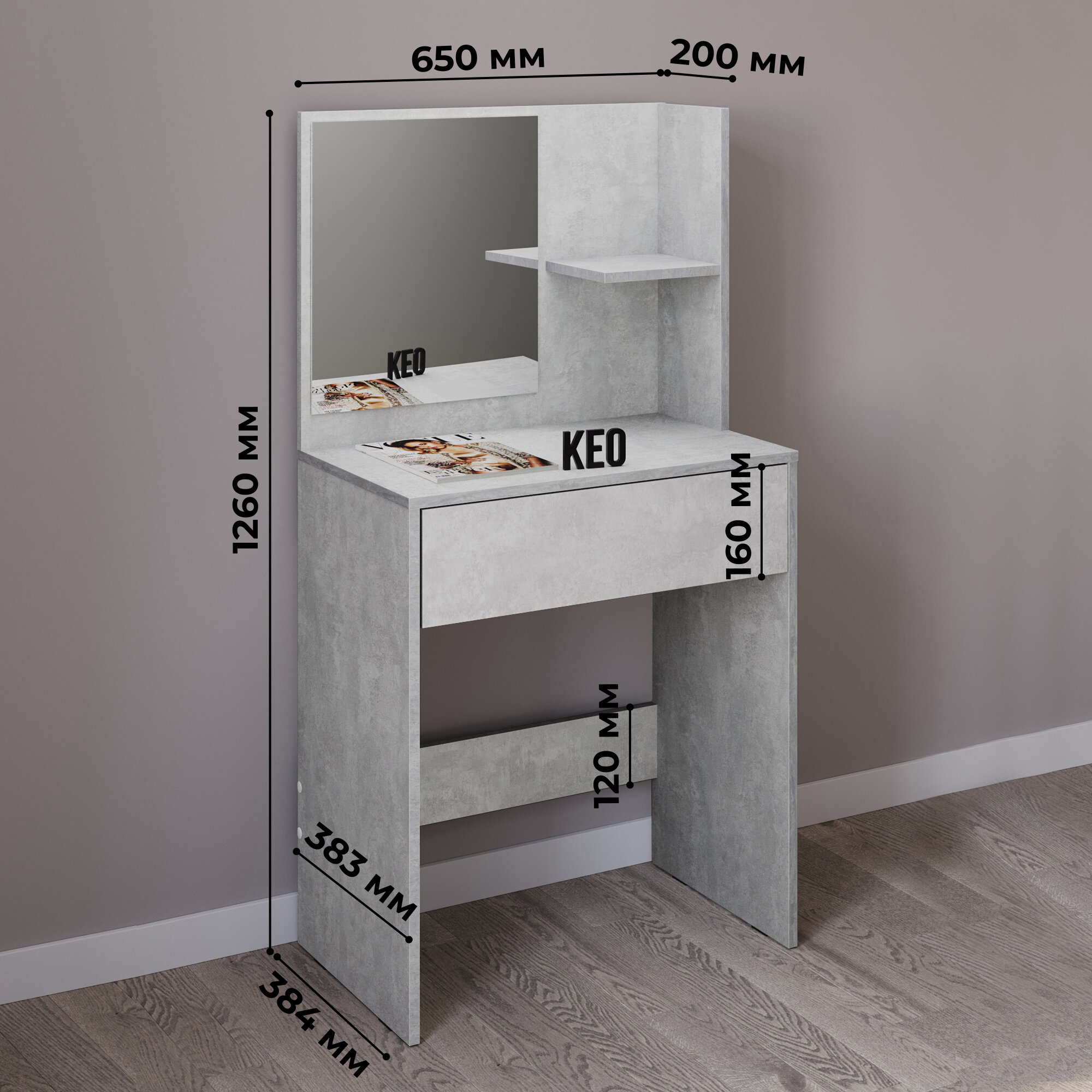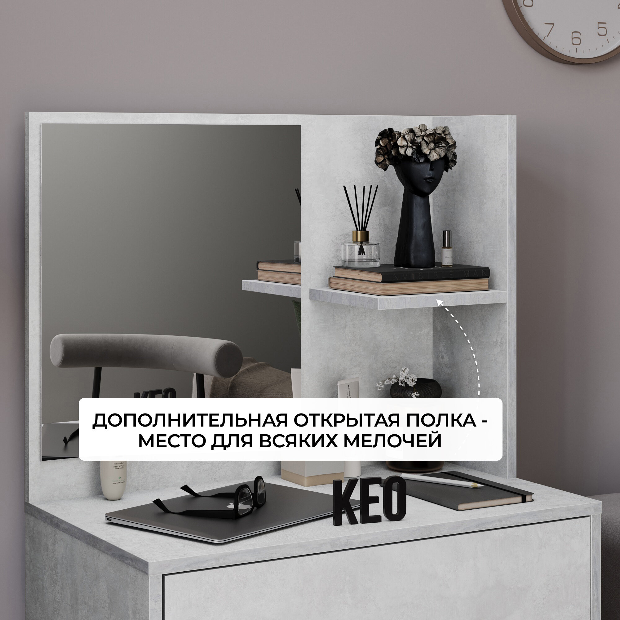 Купить Туалетный столик с зеркалом с открытой полкой и выдвижным ящиком Кео СТЛ-110 бетон