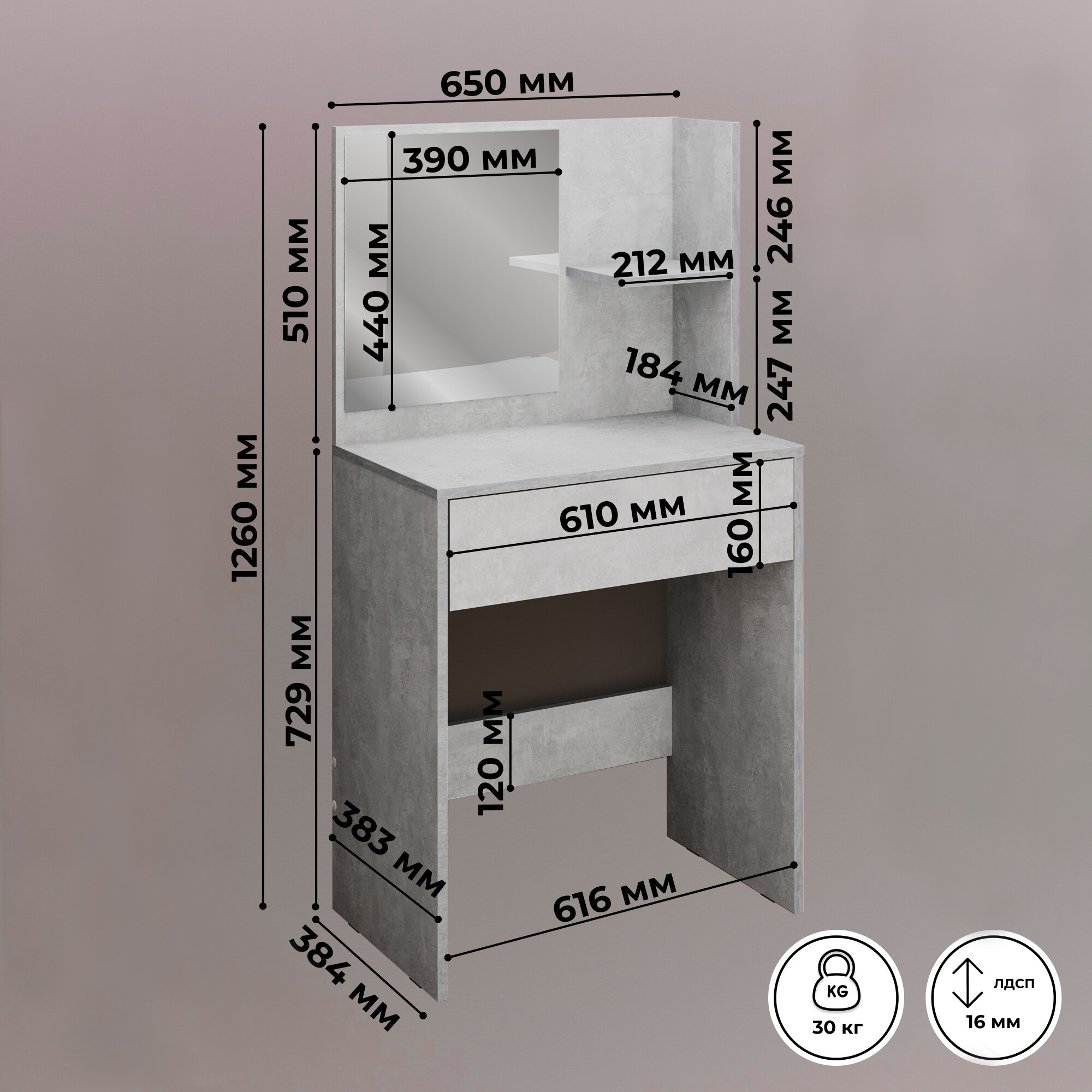 СохранитьТуалетный столик с зеркалом с открытой полкой и выдвижным ящиком Кео СТЛ-110 бетон интересное: