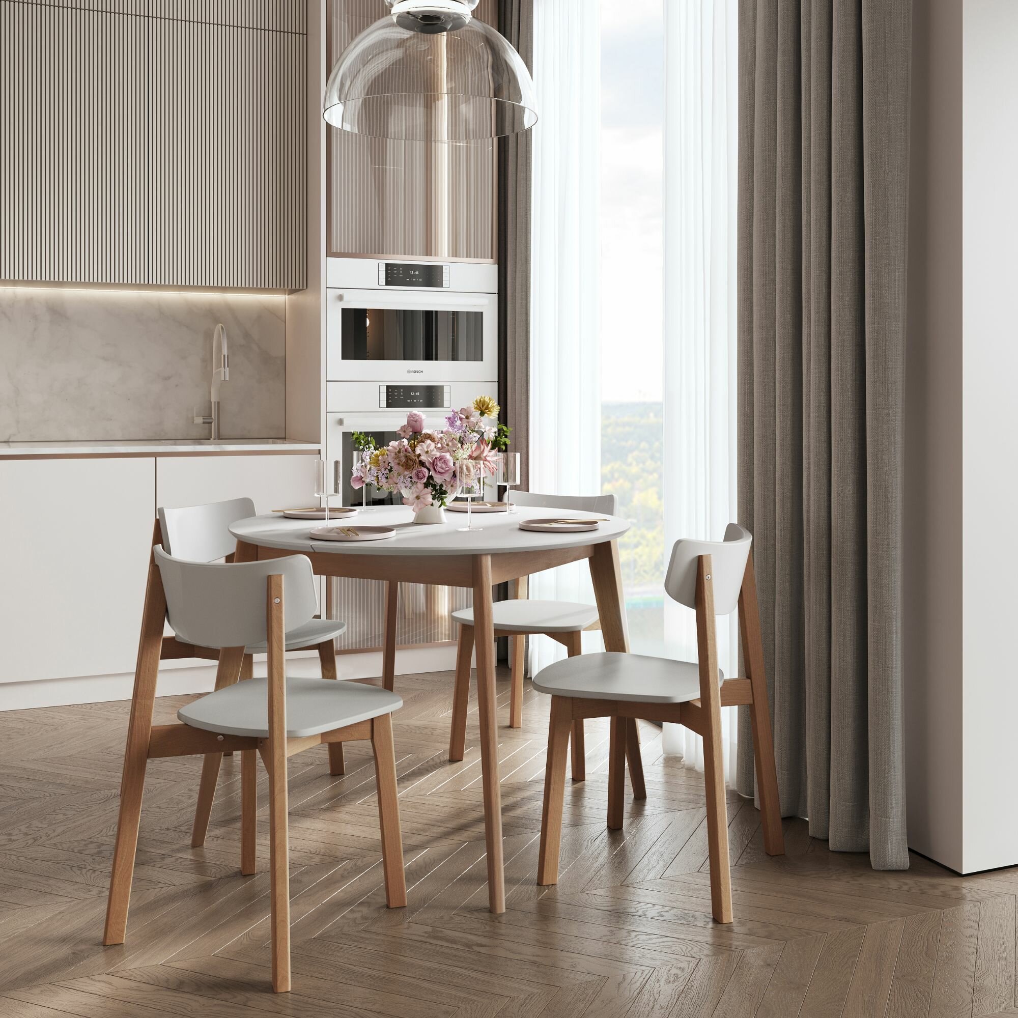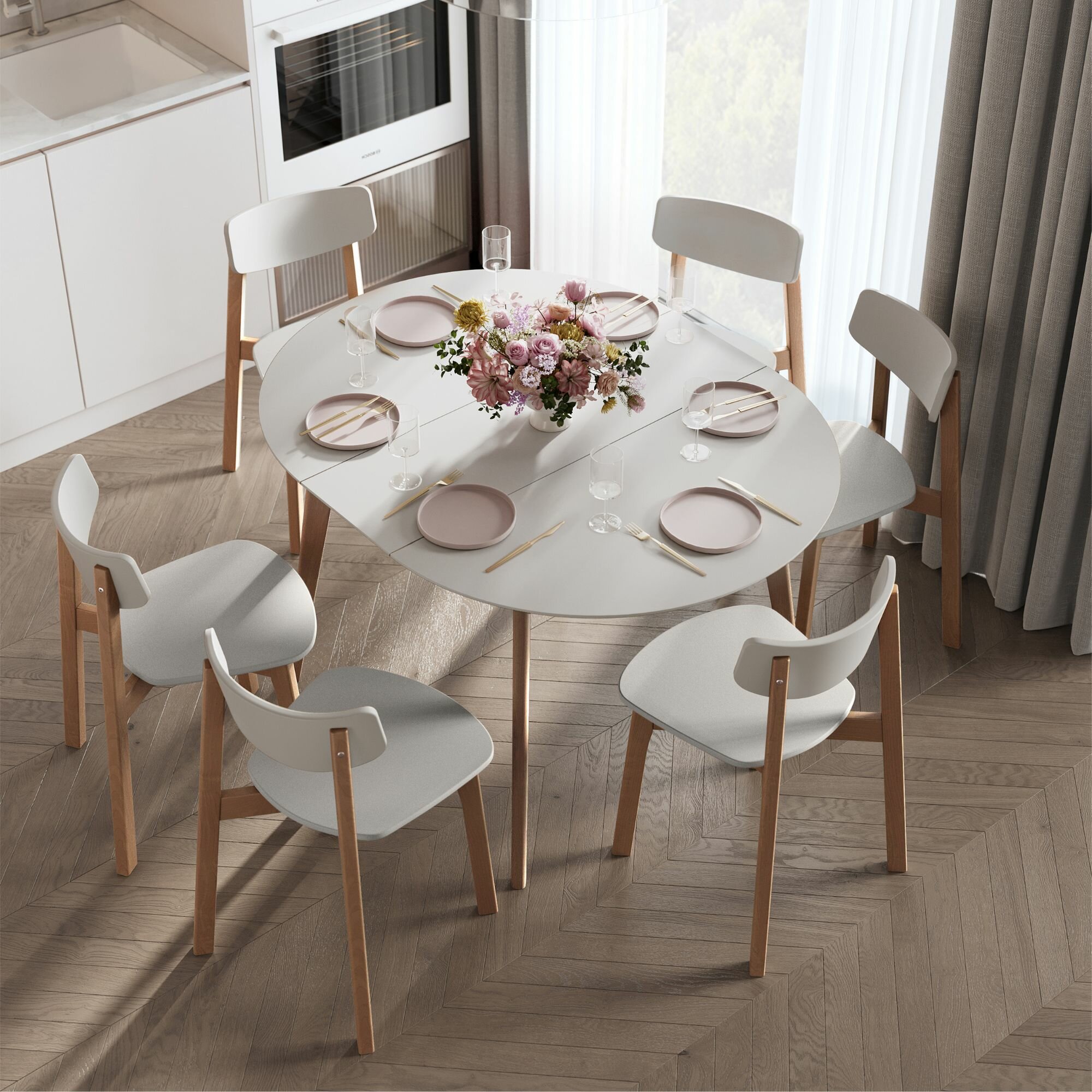 Стол кухонный Орион+ classic (100-130) см круглый, раздвижной, деревянный - Белая эмаль